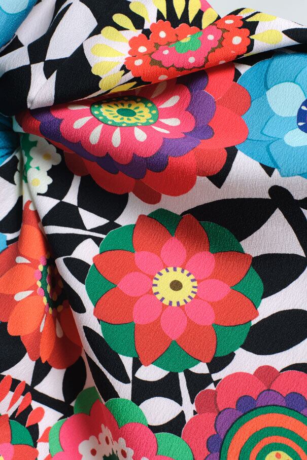 60sのワンピースみたいなレトロなフラワープリント。
