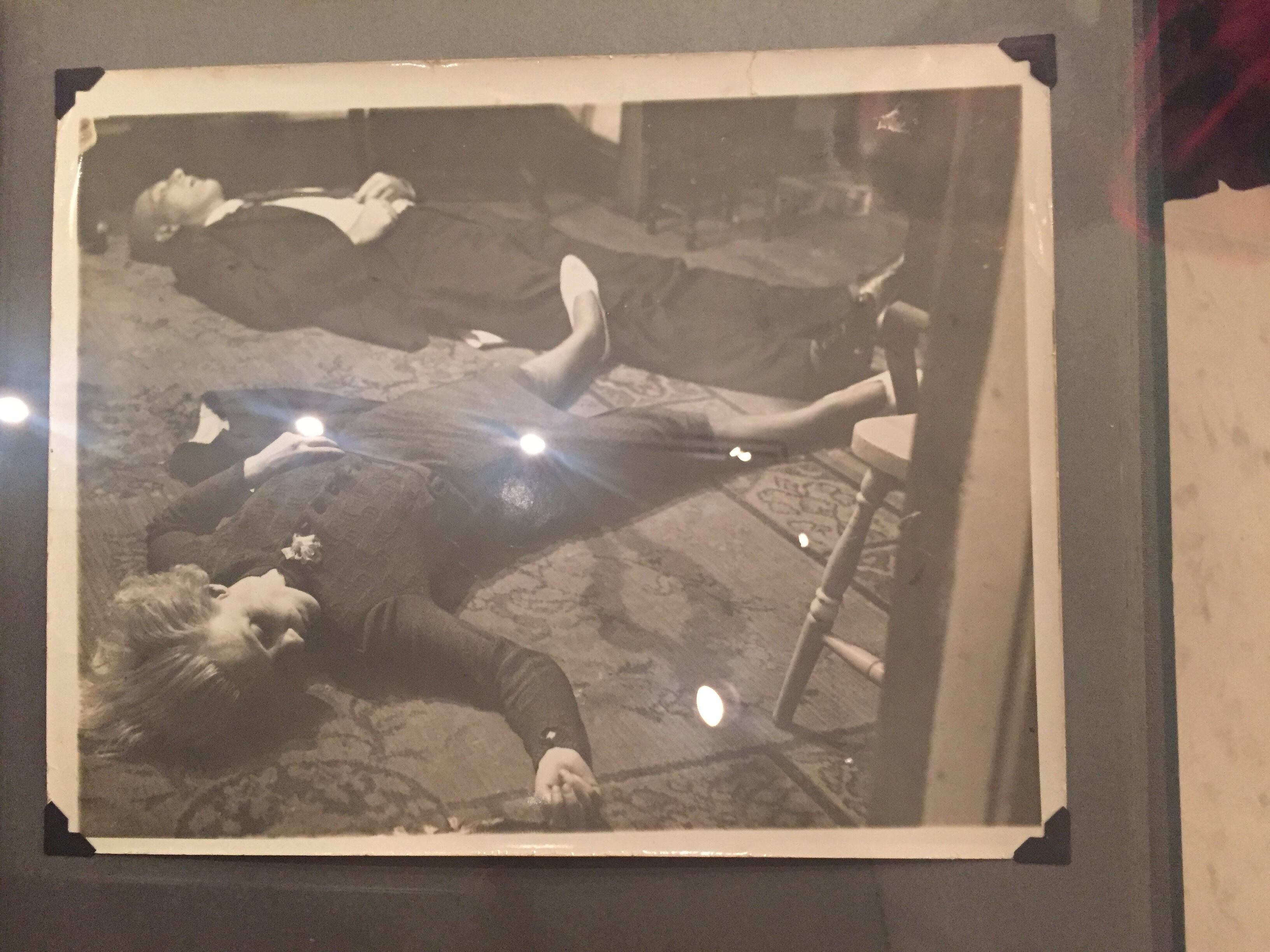 横たわる死んだ女と男の報道写真。