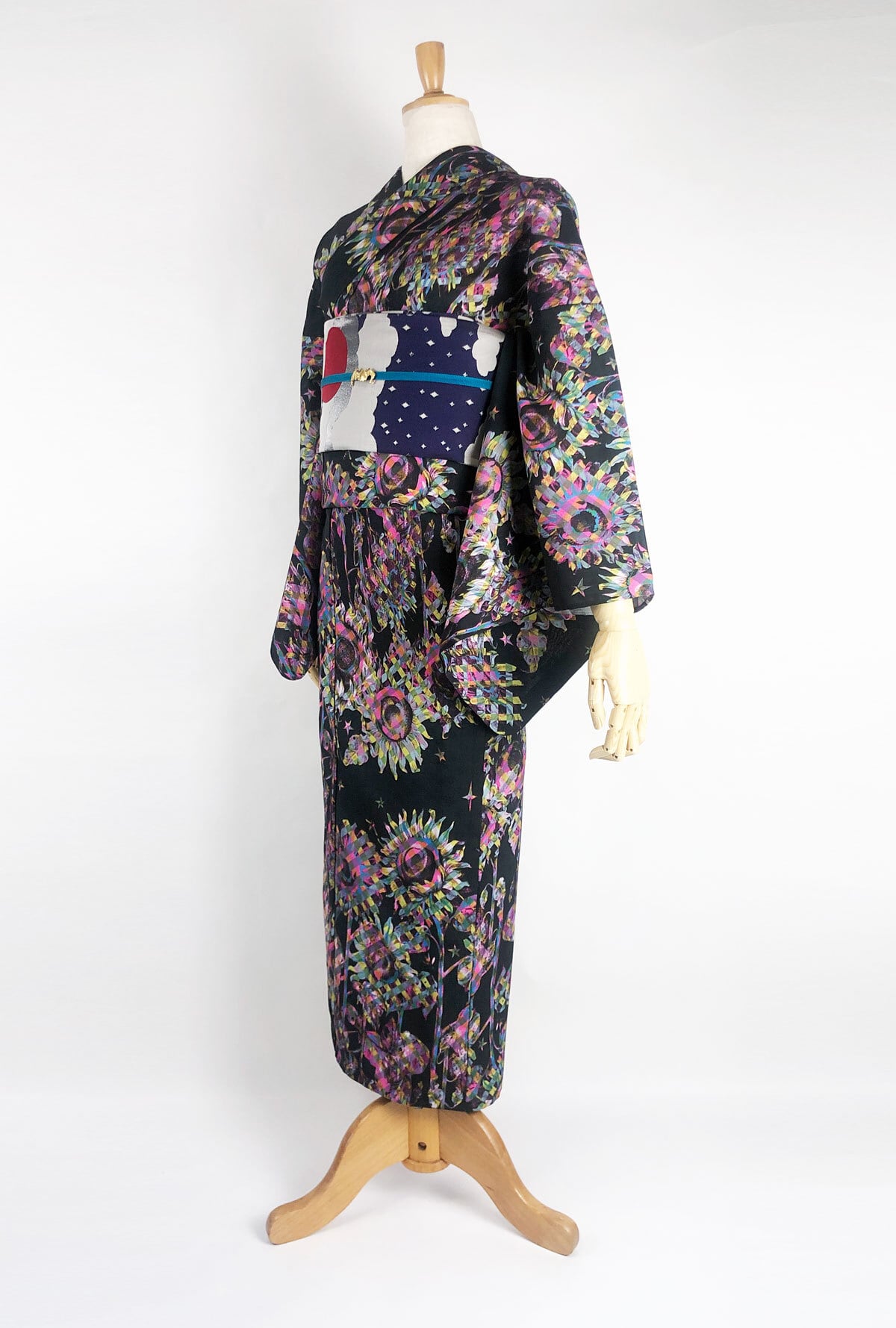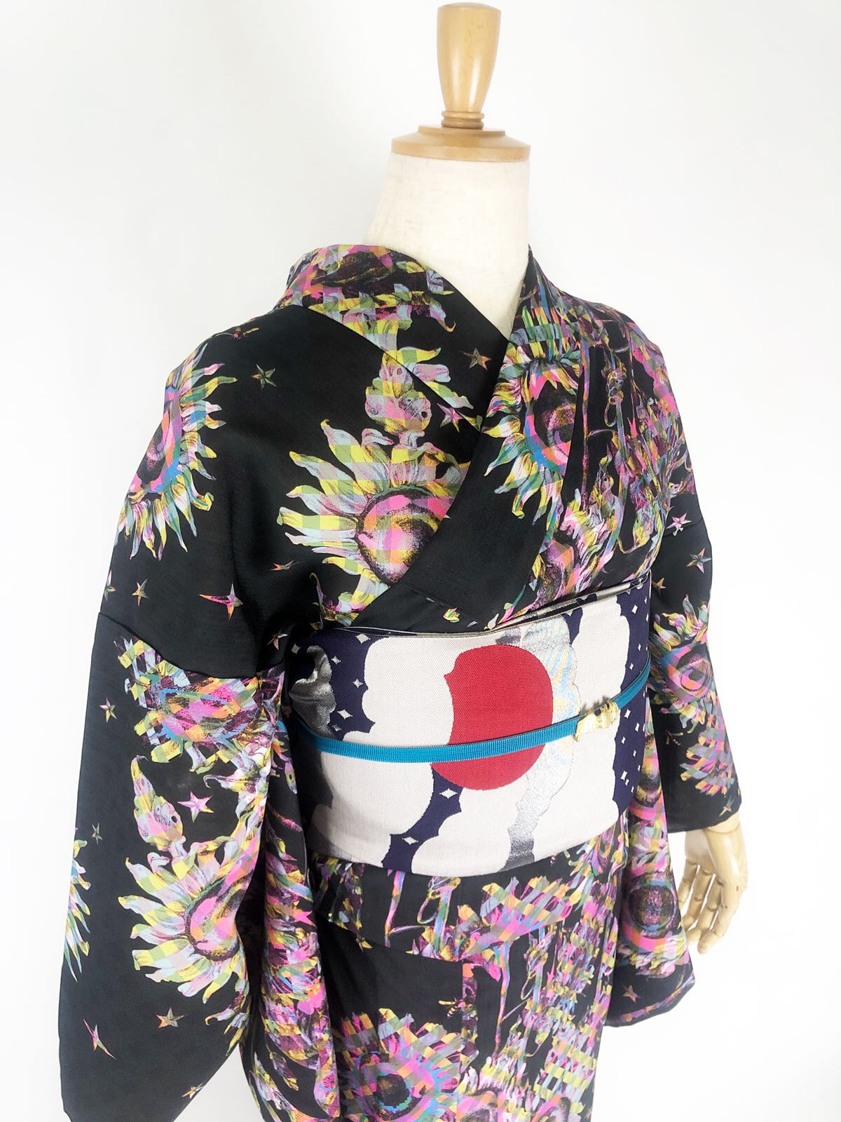 レディース浴衣/メンズ浴衣/ひまわり柄/セオα素材/2色展開(ブラック・グリーン)