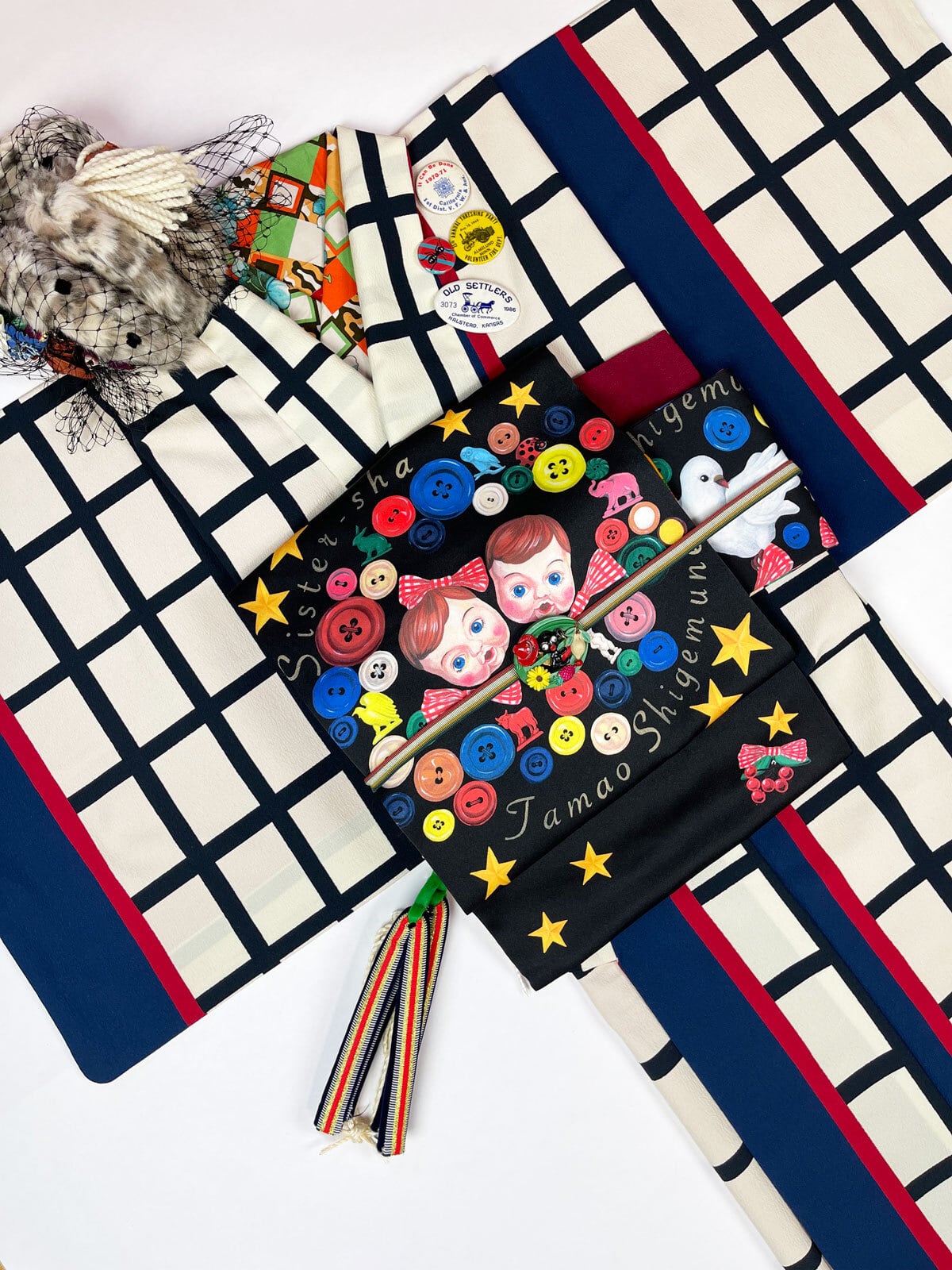アクセサリー作家・シスター社と重宗玉緒のコラボレーションから生まれた、唯一無二の名古屋帯です。