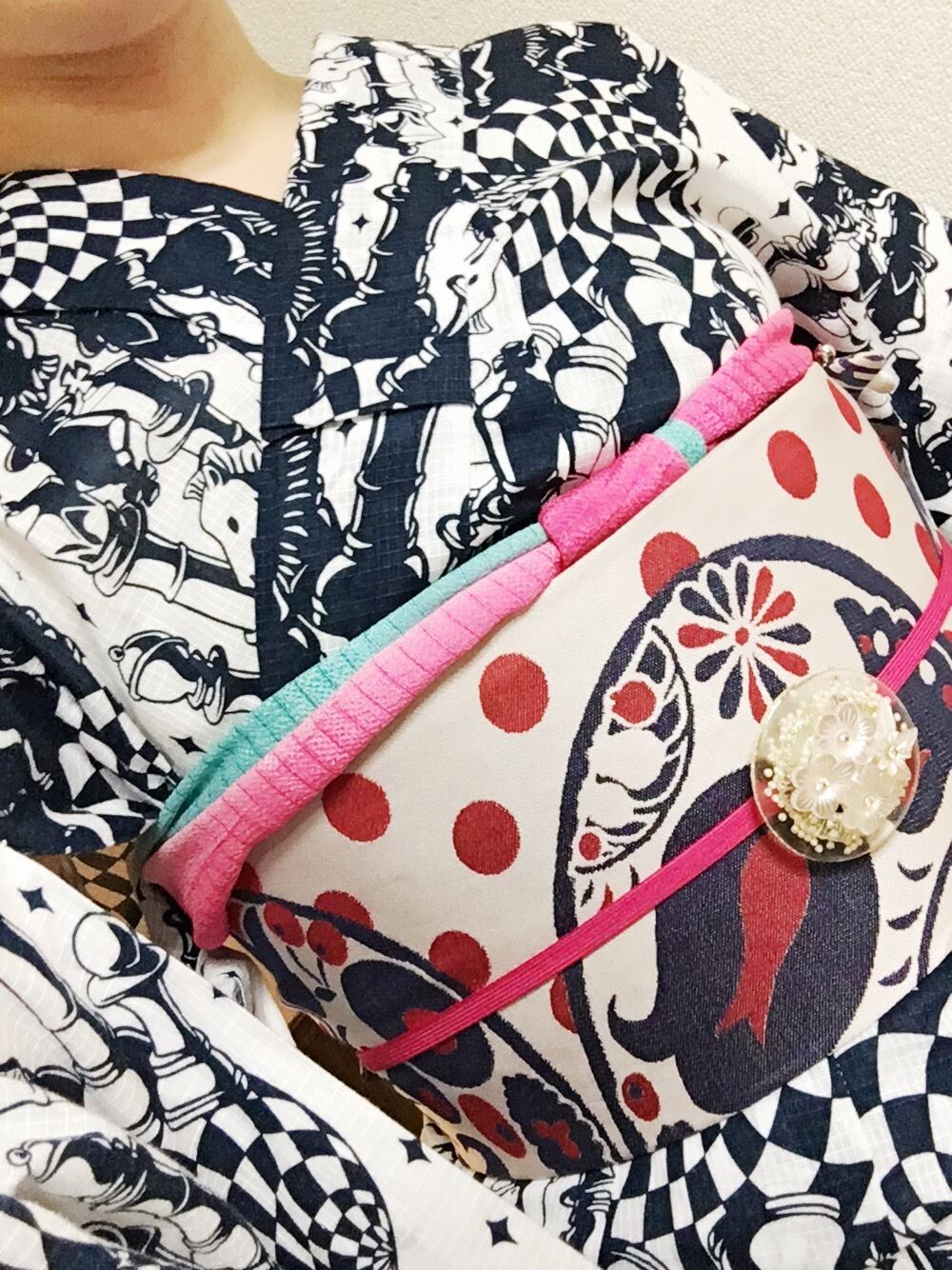 夏用は薄い色の帯揚げが多いですが、もう少しパンチの効いた色が欲しい!ということで作りました。