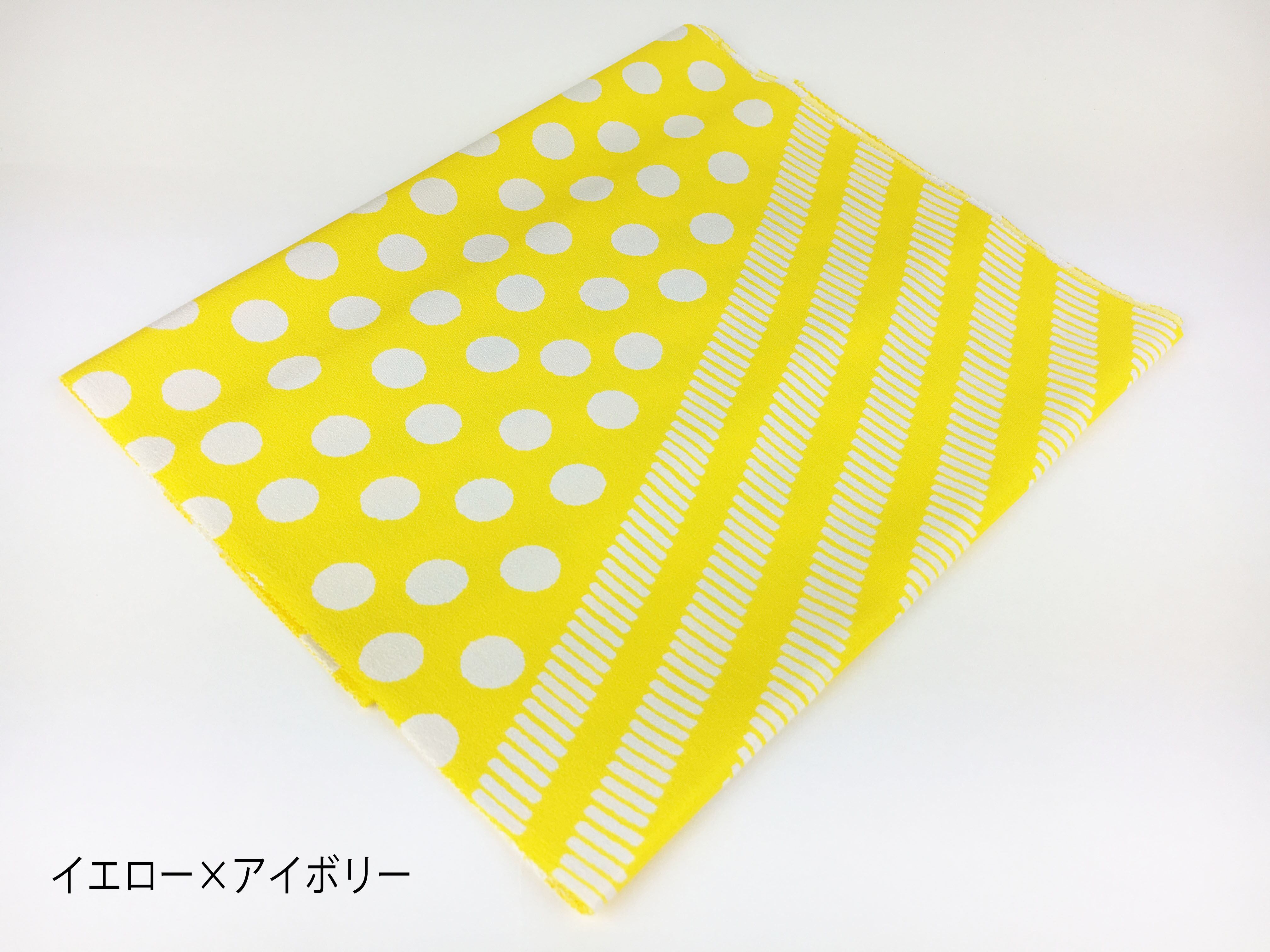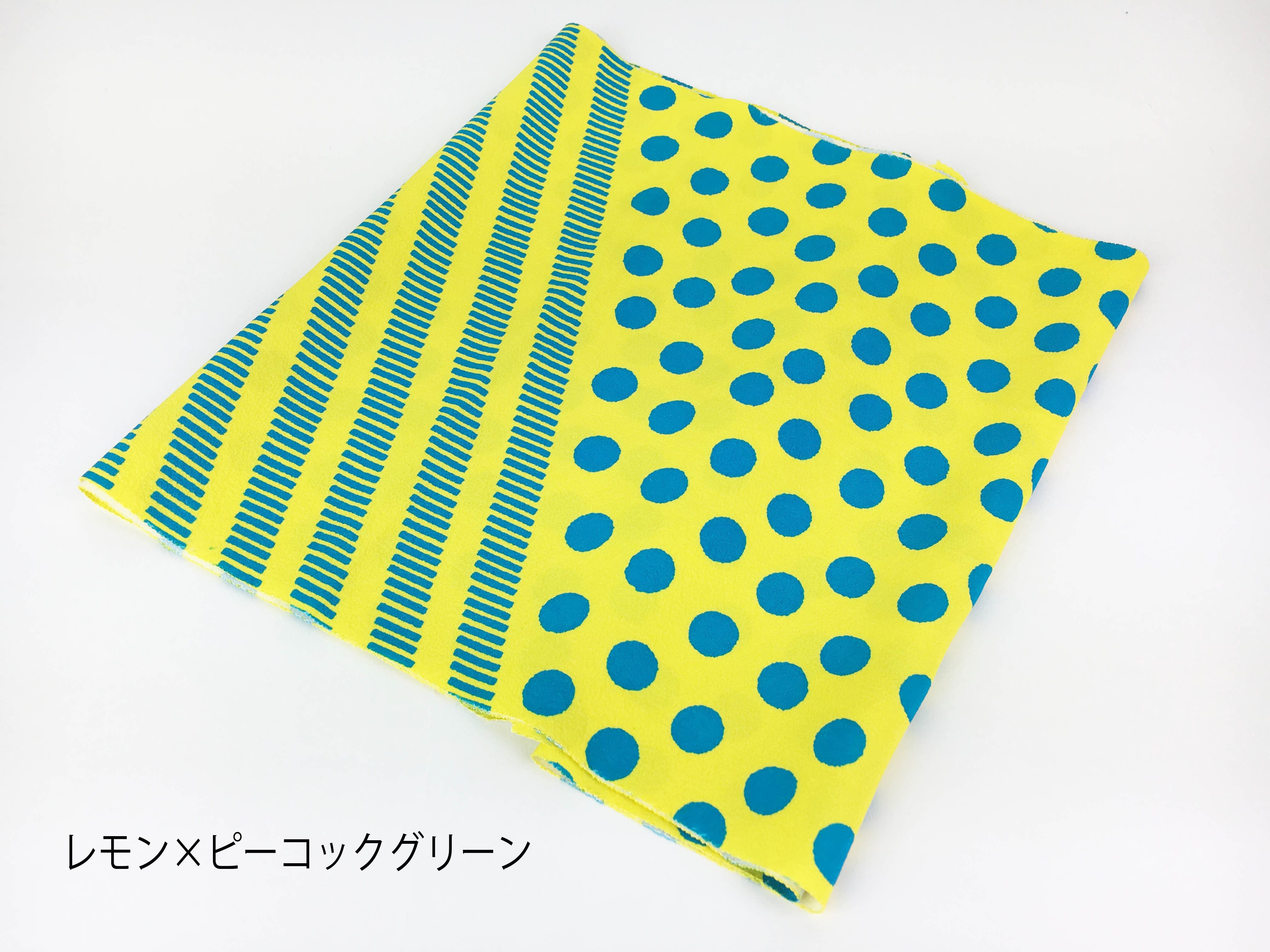 型染めで制作したミズタマとシマシマの柄帯揚げです。