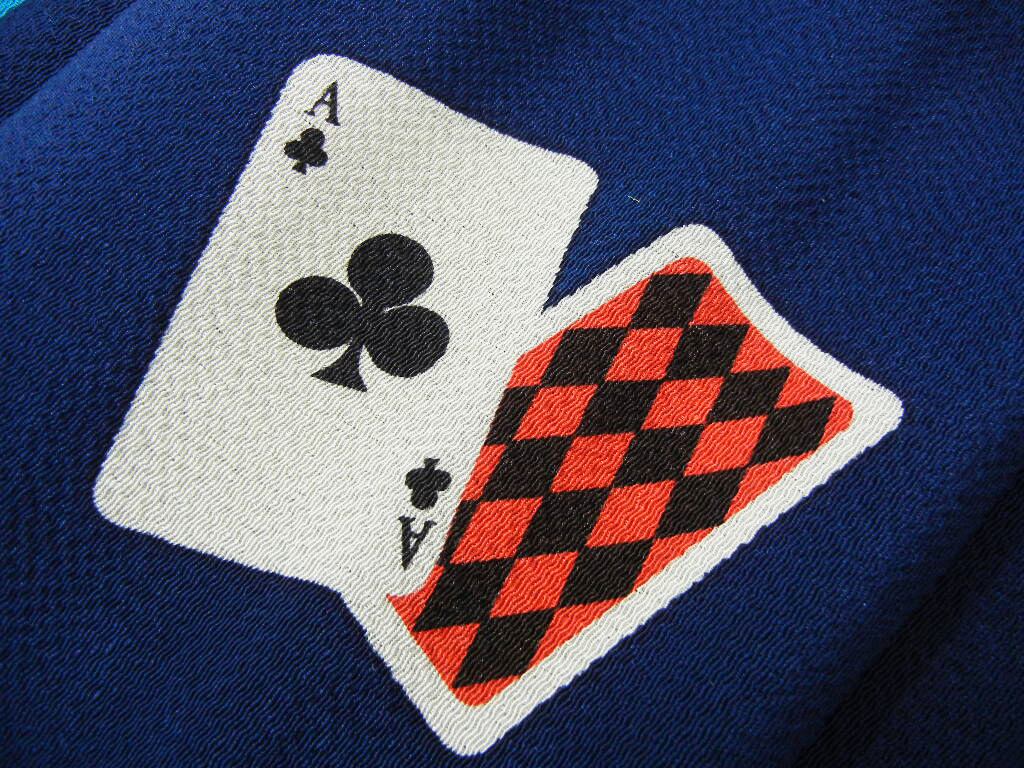 型染めで制作したトランプ柄のワンポイント帯揚げです。