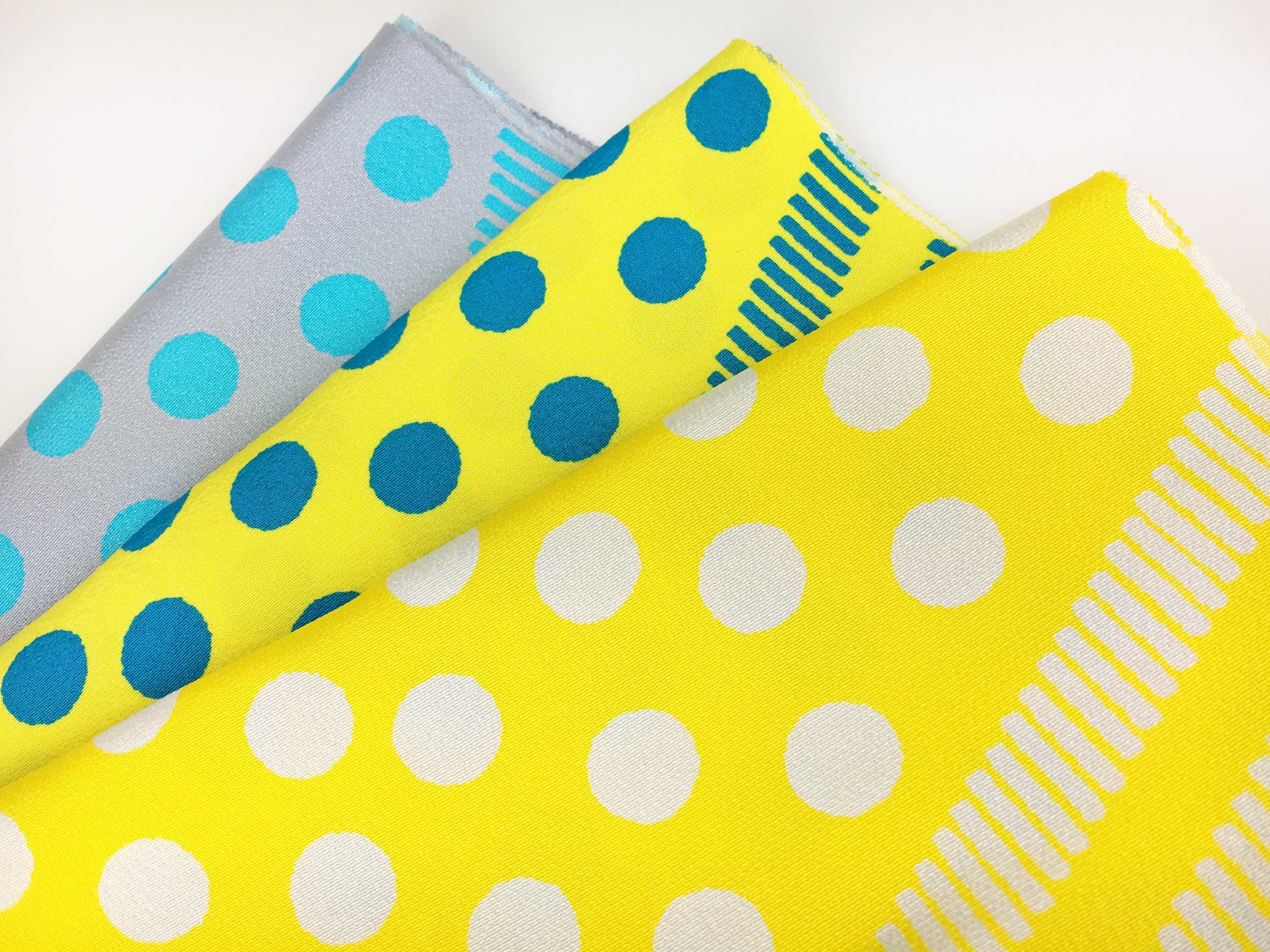 型染めで制作したミズタマとシマシマの柄帯揚げです。