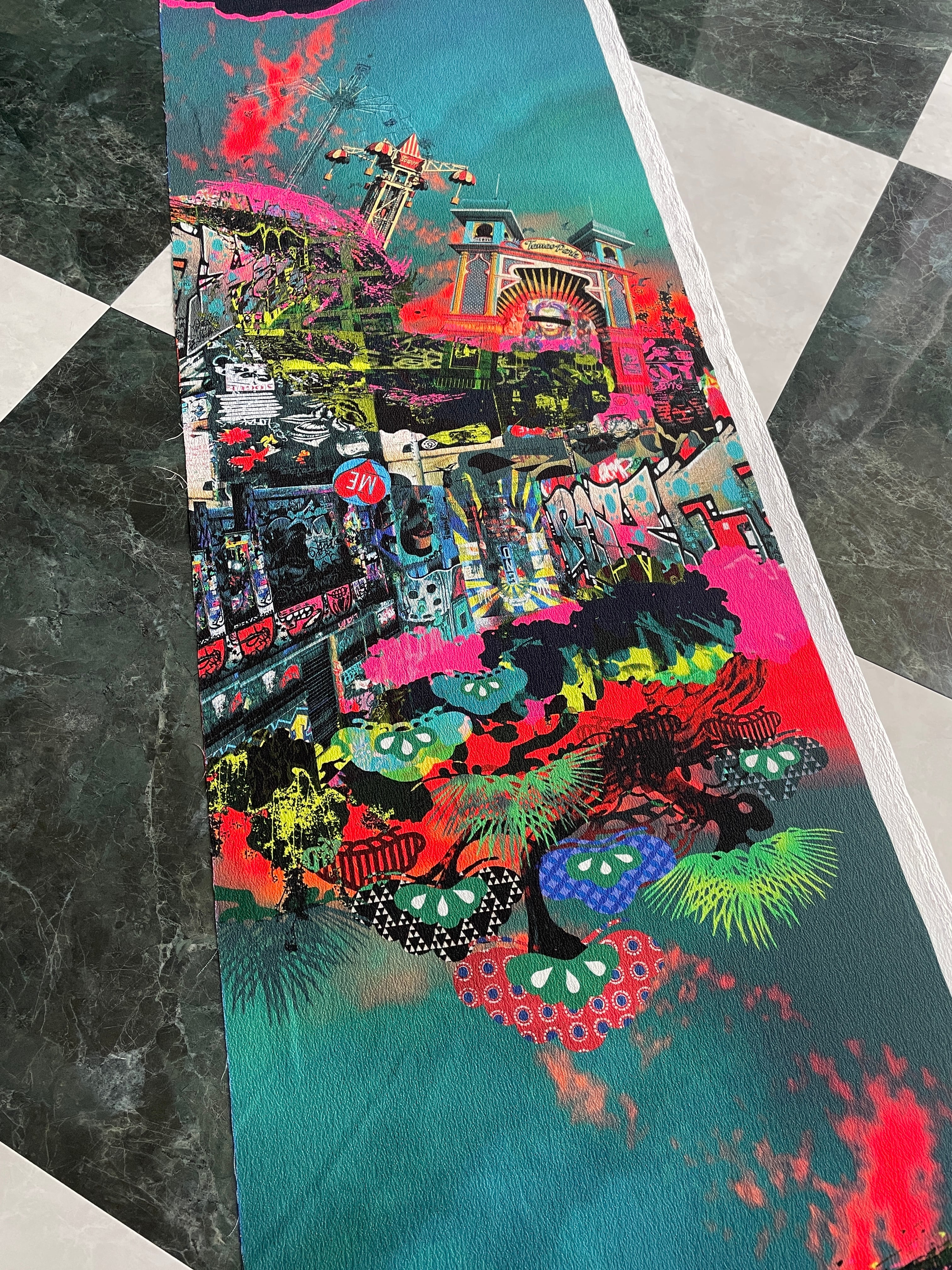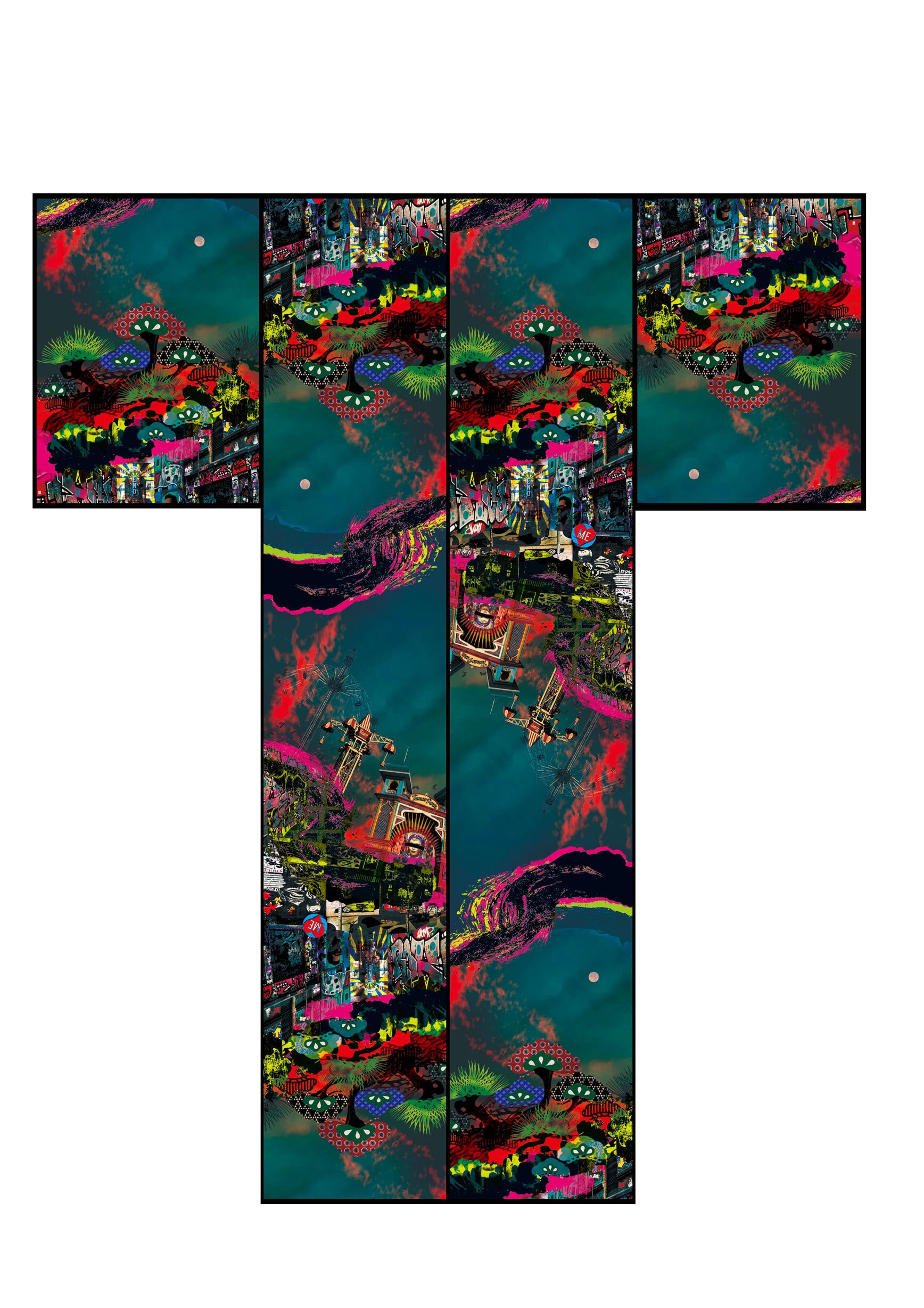 本作は、移動体験の中で得た視覚的断片を再構成し、「日本から見た海外」という立場性そのものを図像化する試みでもあります。