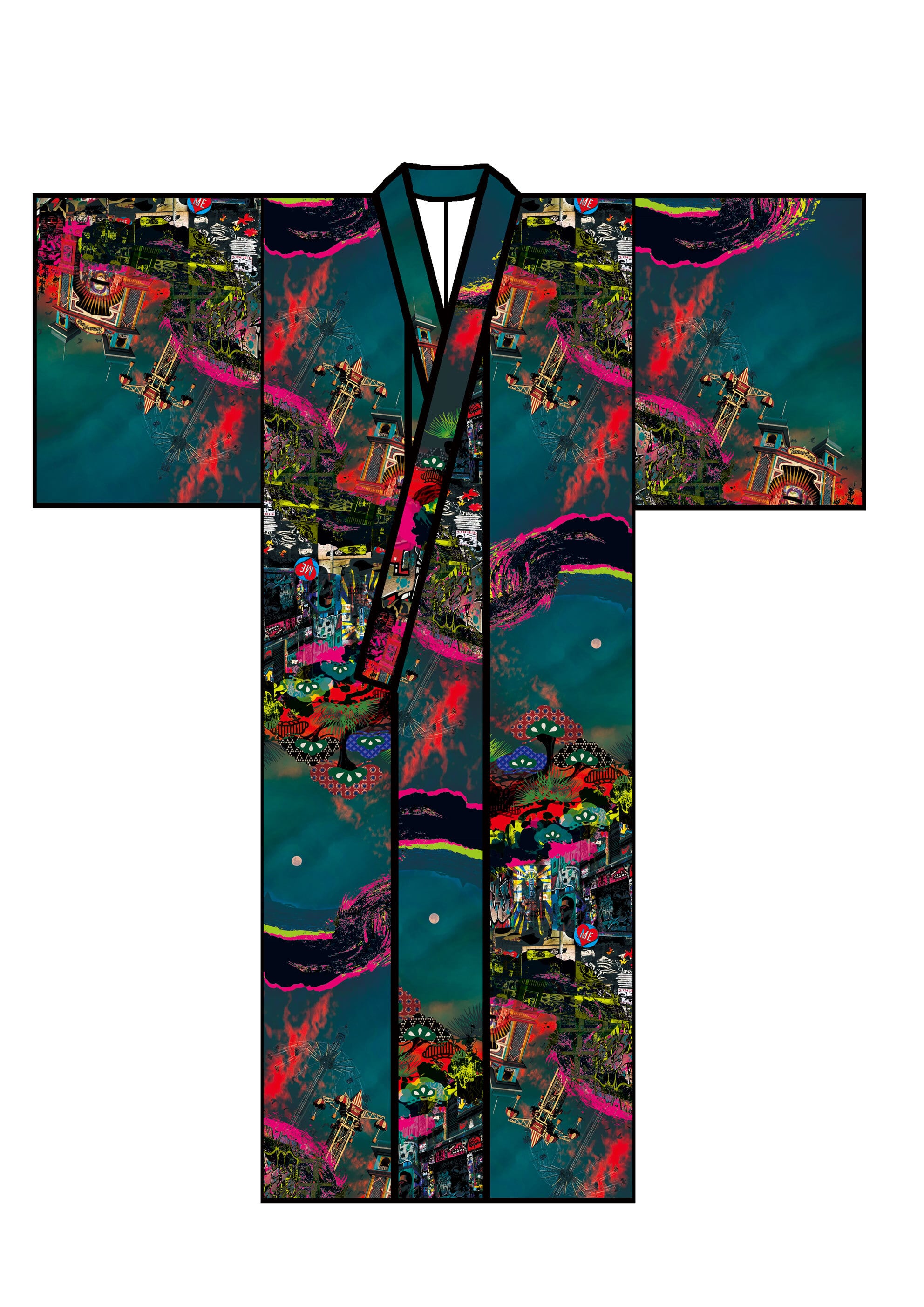 海外映画に登場する少しずれた日本像をイメージして制作した《JAPON》シリーズ(名古屋帯)の延長線上にある作品でもあります。