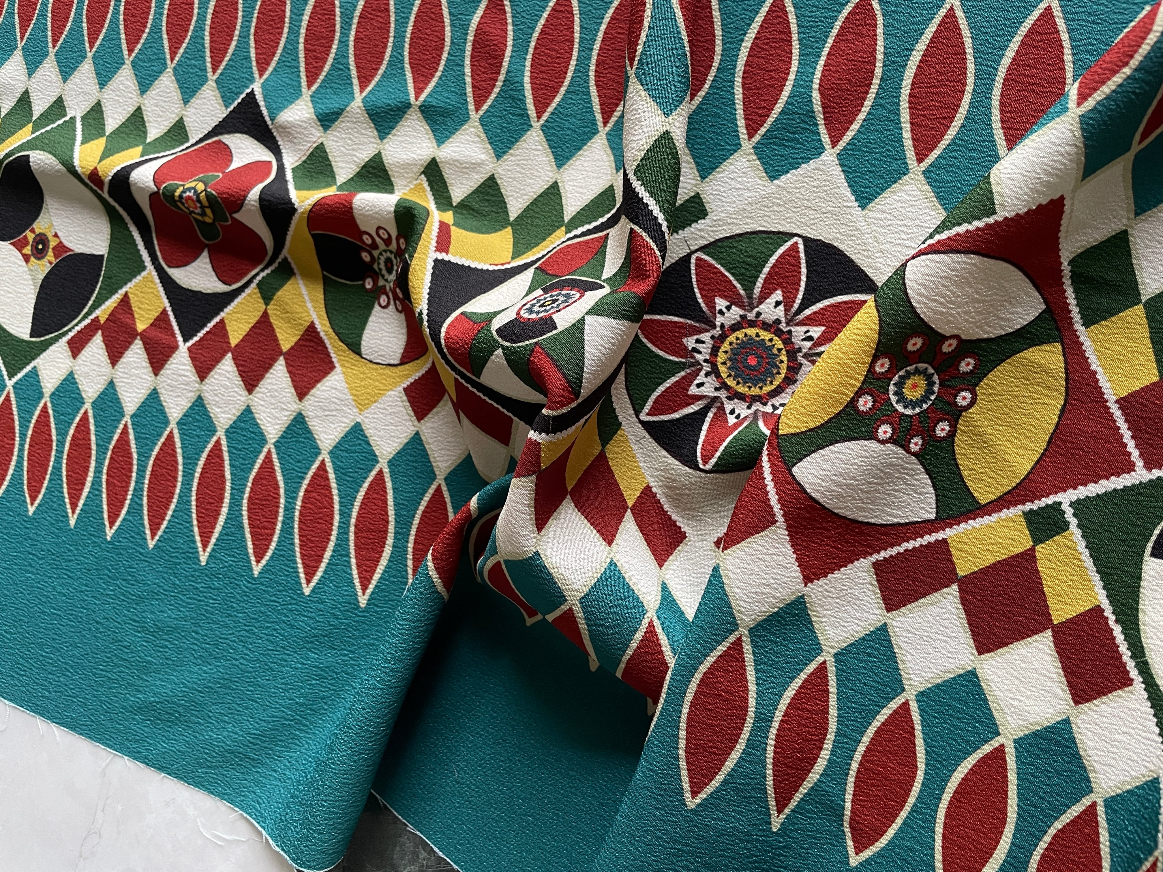ポリエステル小紋 「Gentle Shield」 ピーコックグリーン