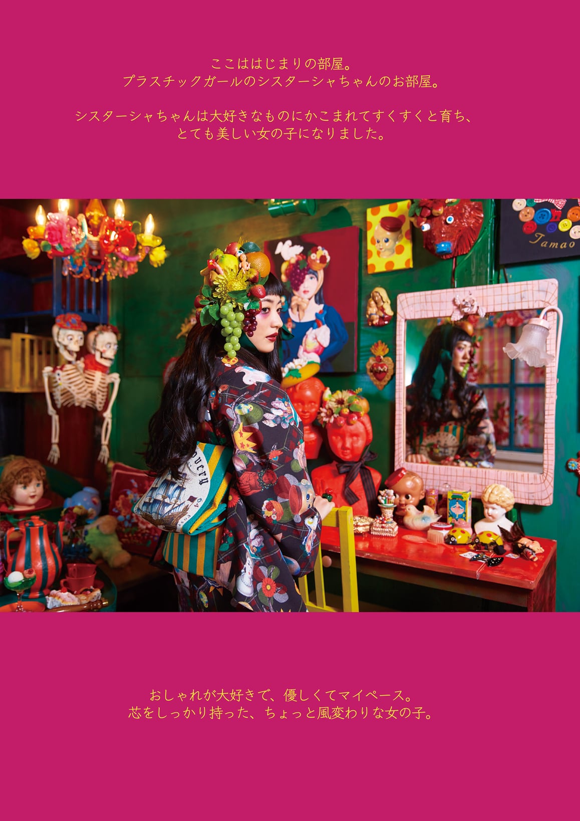 描いた絵は着物になり、それをシンガーソングライターNakanoまるが身にまとい、シスター社のアイコンであるプラスチックガールの「シスターシャちゃん」に。