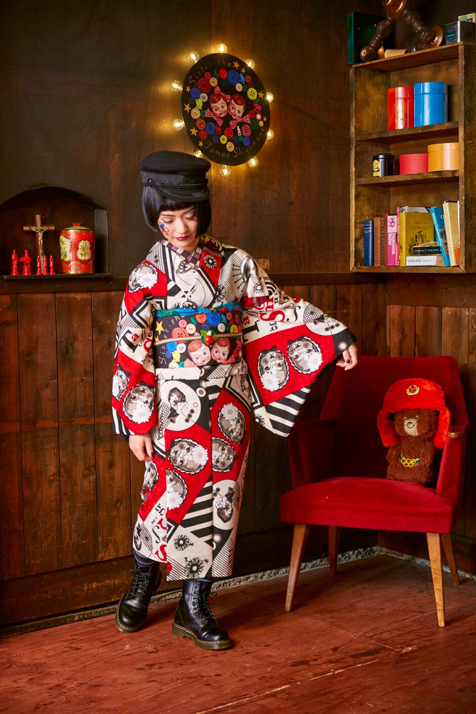 シスターシャちゃんが被っている三角頭巾からロシアを連想し、私も大好きなロシアンアヴァンギャルドのデザインに。シスター社のアクセサリーでよく出てくるてんとう虫、私が大好きな蟻のモチーフなど、私とシスター社の好きなものも盛り込みました。」