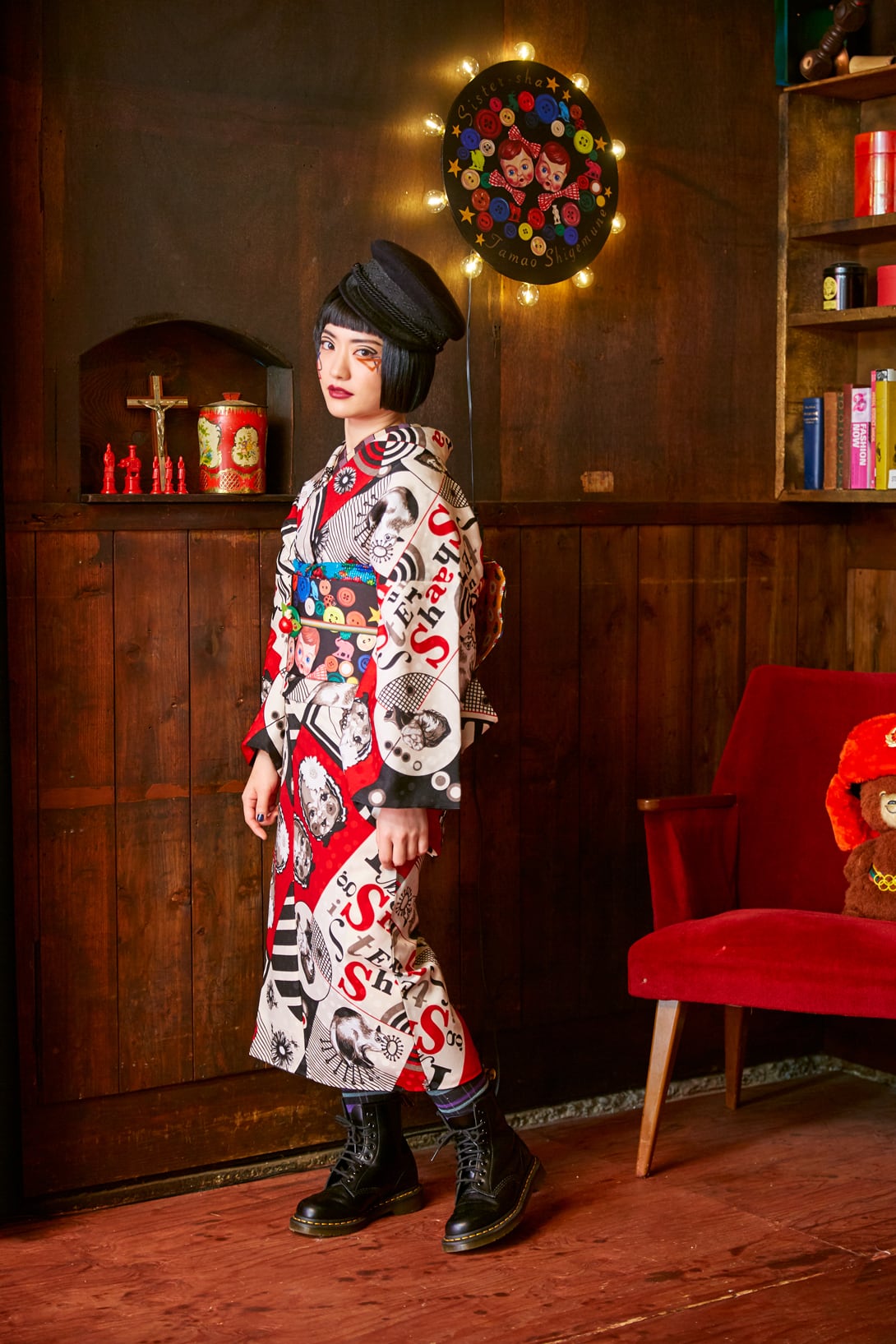 シスター社を描いた絵をそのまま着物にするのではなく、さらに発展させてザインに落とし込みました。