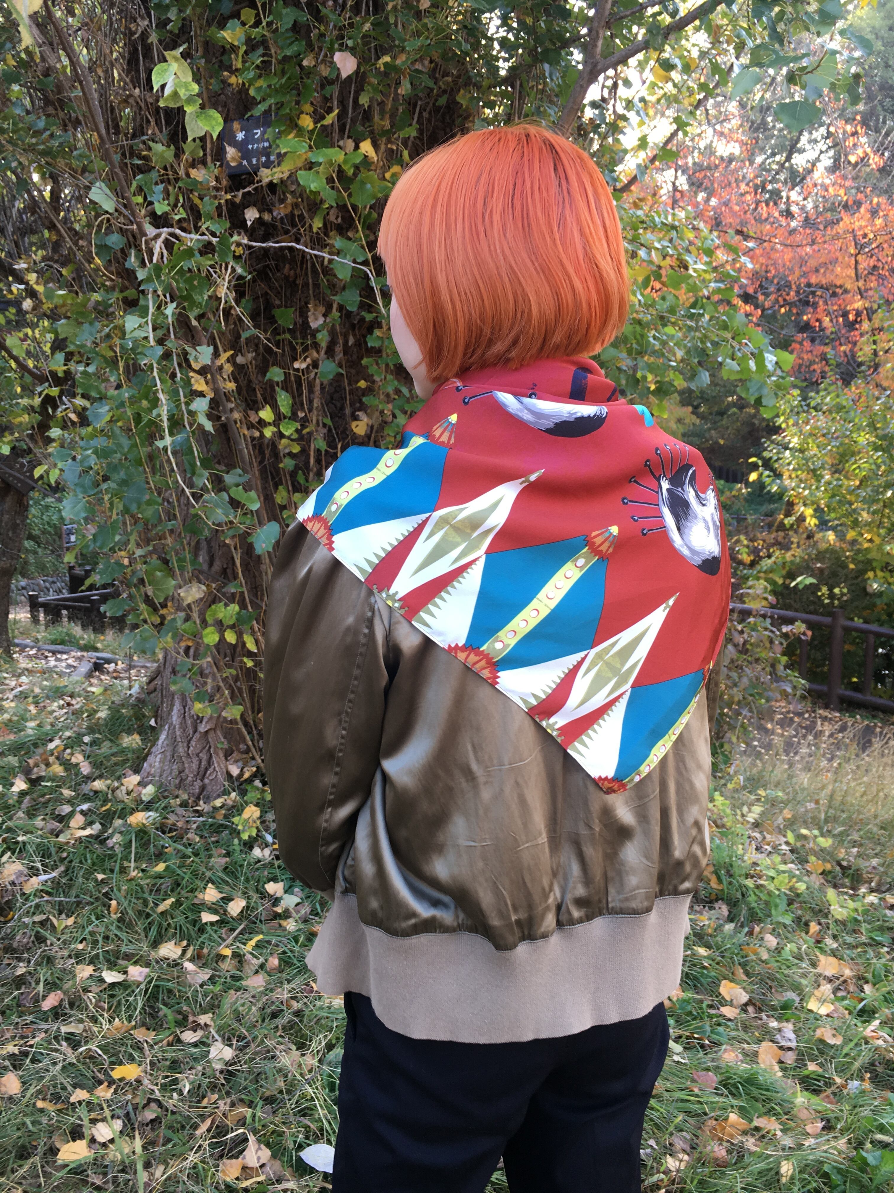 滑らかなポリエステルサテンなのでアクセサリー感覚で使うほか、防寒にもしっかり役立ってくれます。