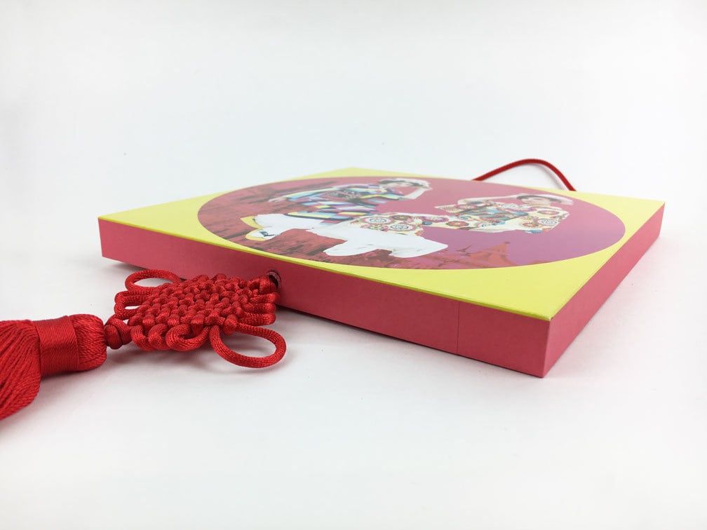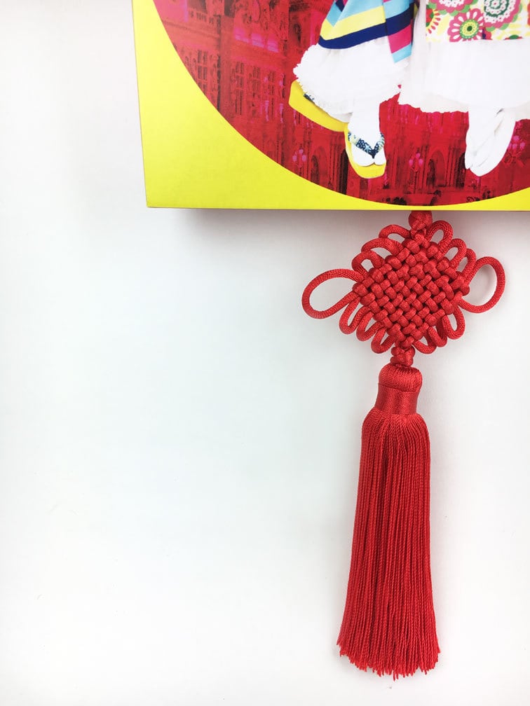 中国をイメージした真っ赤なタッセルが付いているので、インテリアとして壁掛けに。