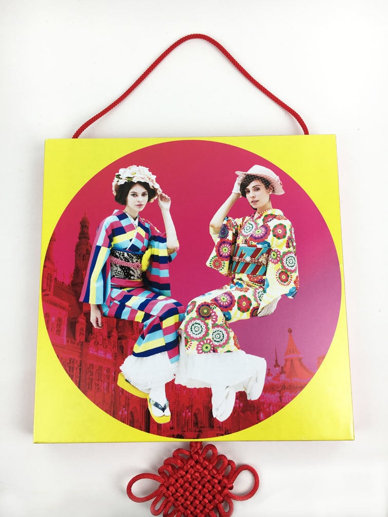 ポップでカラフルな1960年代のファッション・色使いをデザインソースに制作した「フラワープリント」と「ヨコシマ」を中華風にアレンジ。