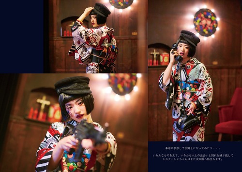 描いた絵は着物になり、それをシンガーソングライターNakanoまるが身にまとい、シスター社のアイコンであるプラスチックガールの「シスターシャちゃん」に。
