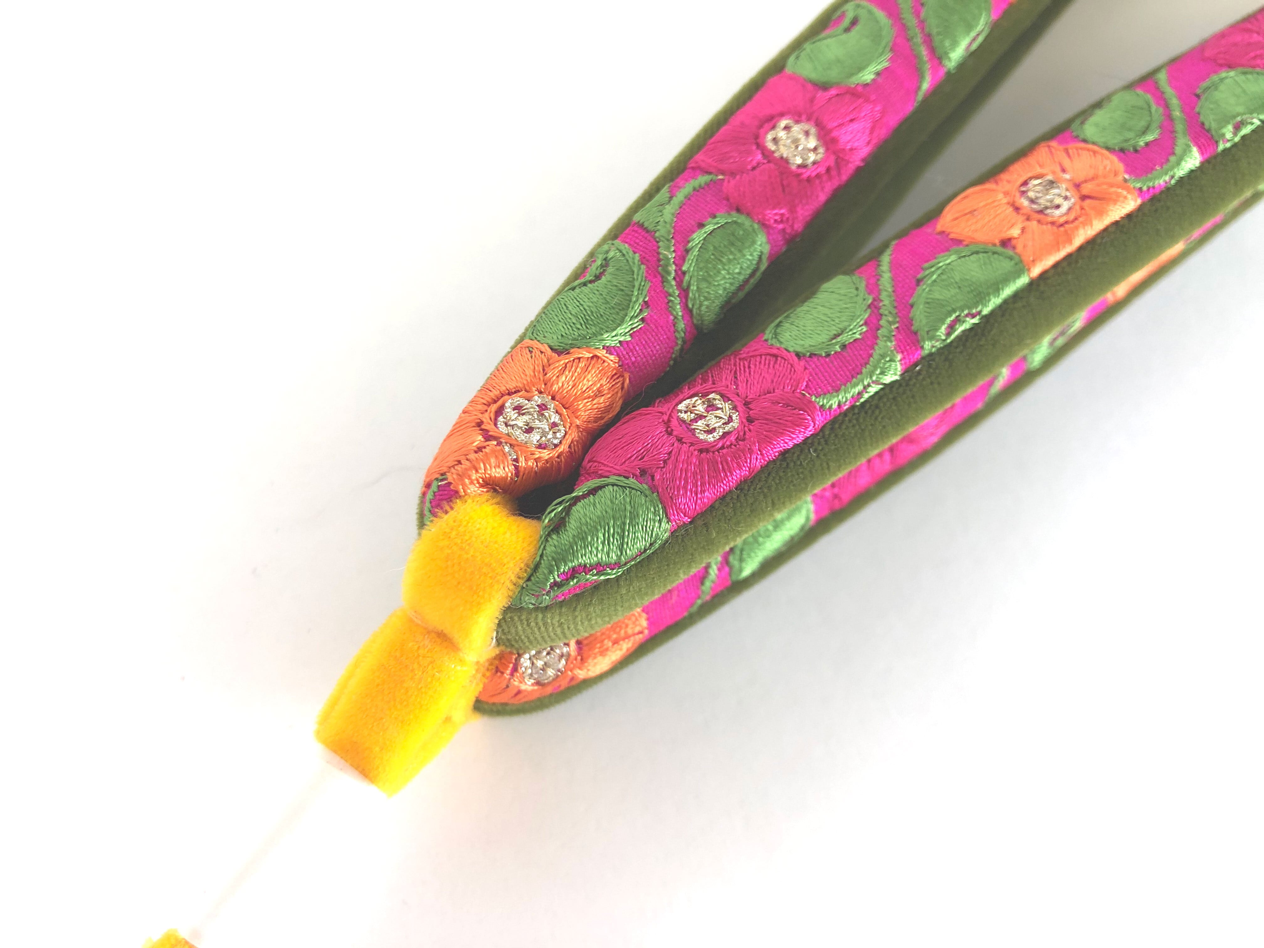 太めで当たりが柔らかく、足が痛くなりにくい鼻緒です。