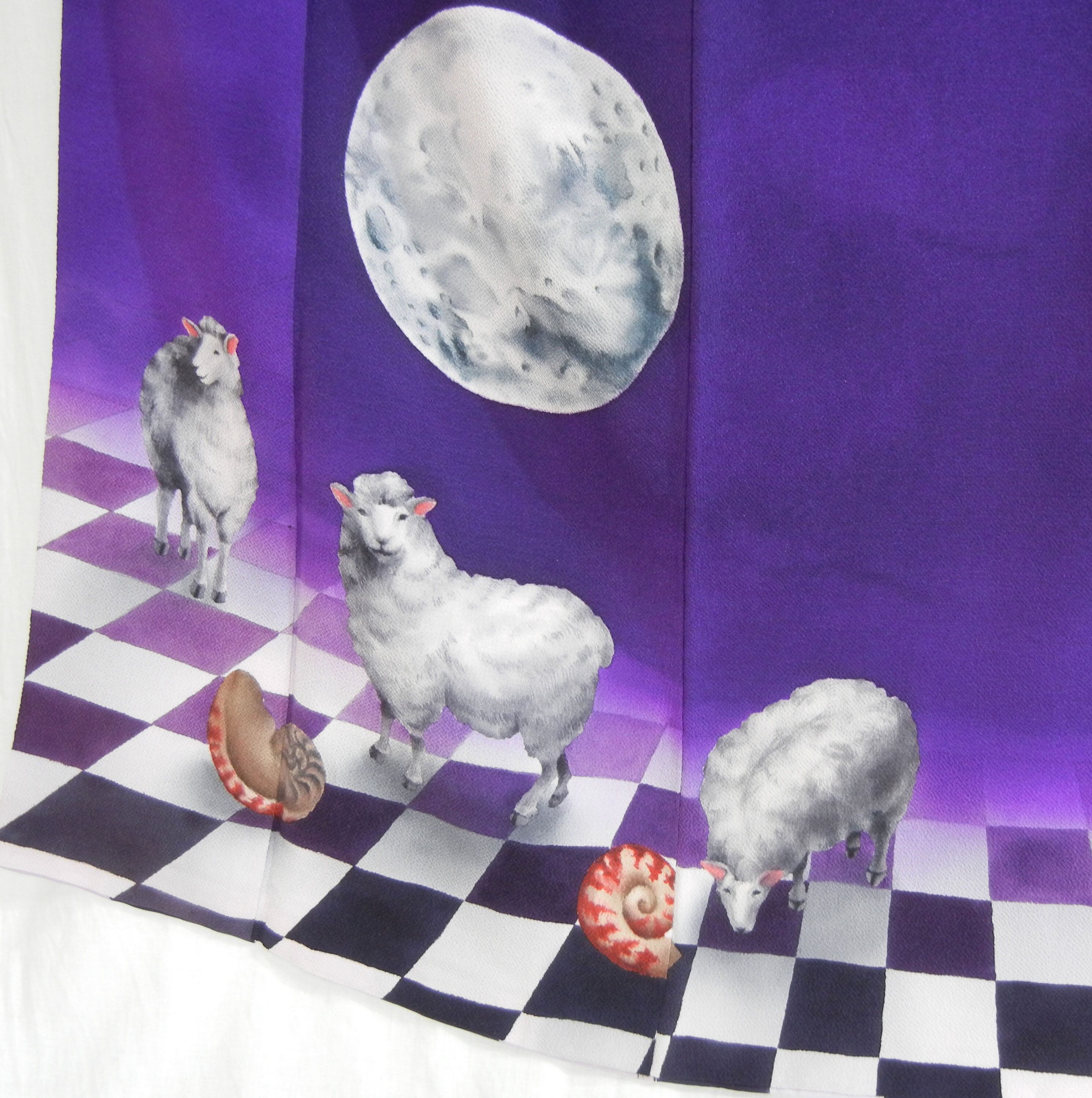 そして八掛には、表地から繋がるチェックの床、さらに眠れない人を見つめる一つの目が。