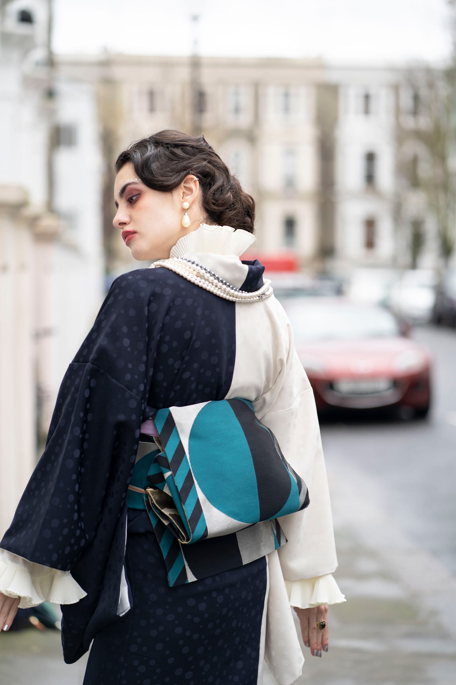 柄on柄とはまた違う、帯や小物での遊びを楽しんでいただけたら幸いです。」
