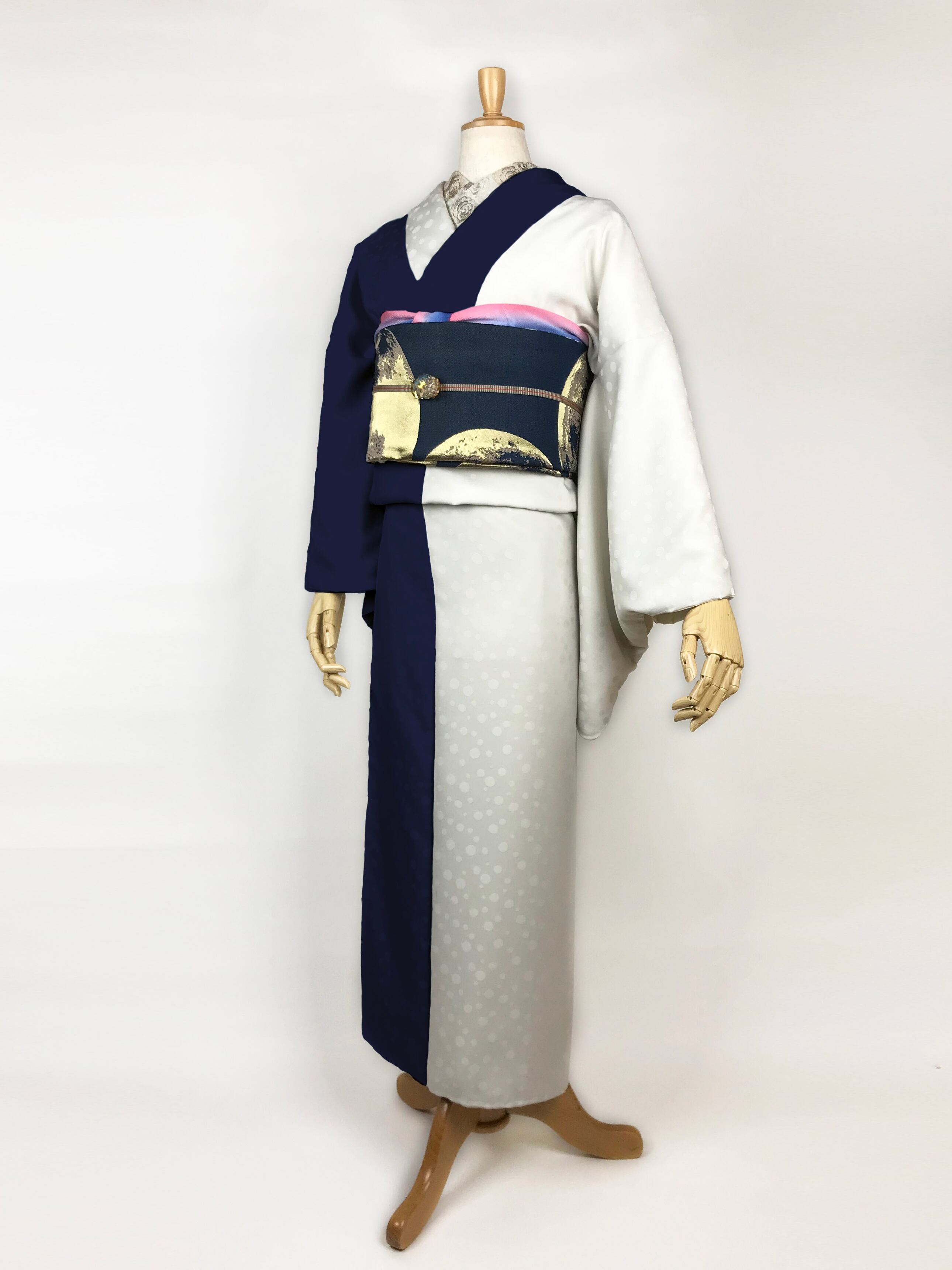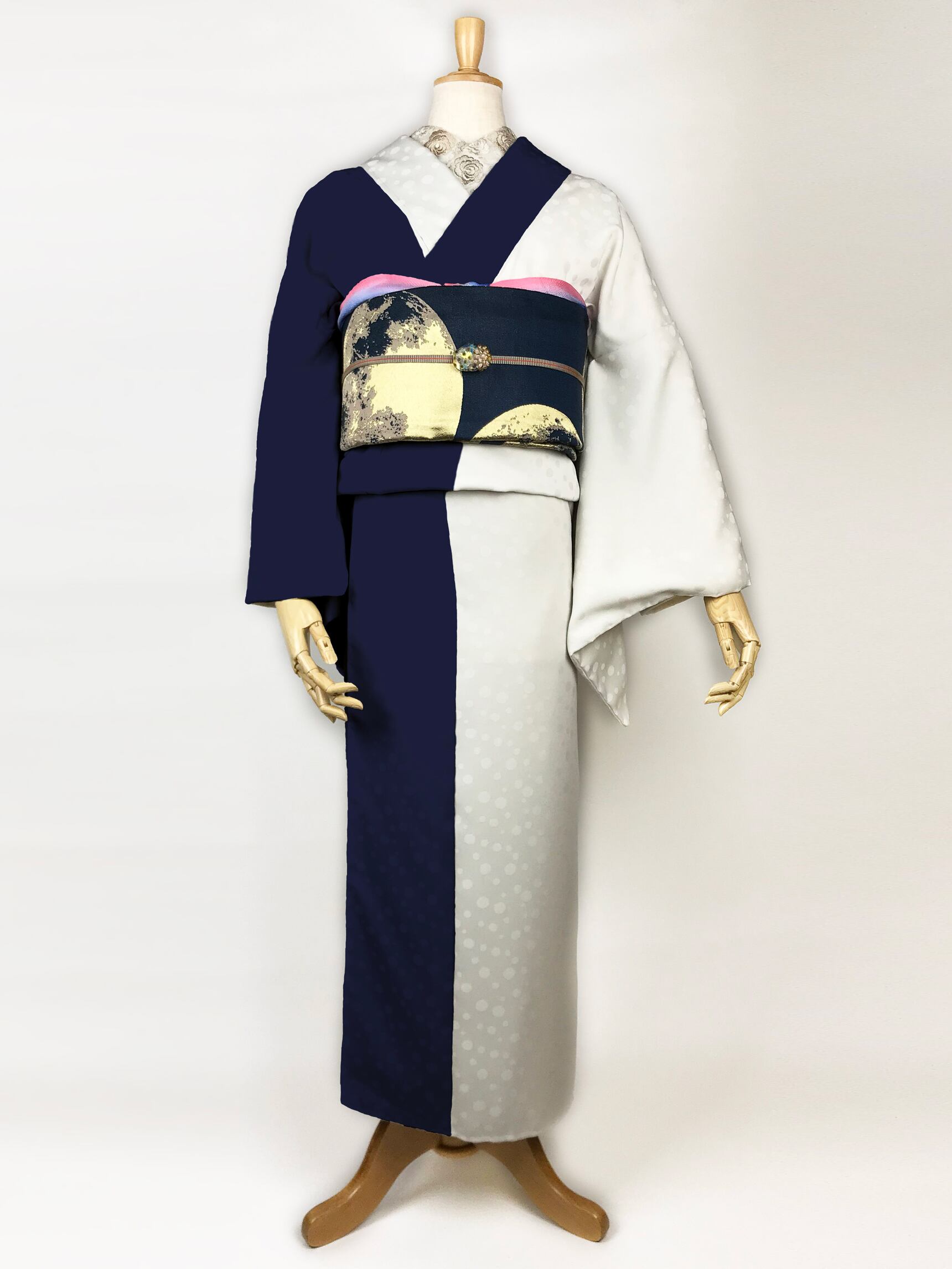 無地着物はアイボリー無地・ネイビー無地・アイボリーとネイビーのコンビカラーの3色展開です。(こちらはコンビカラーのページです。)