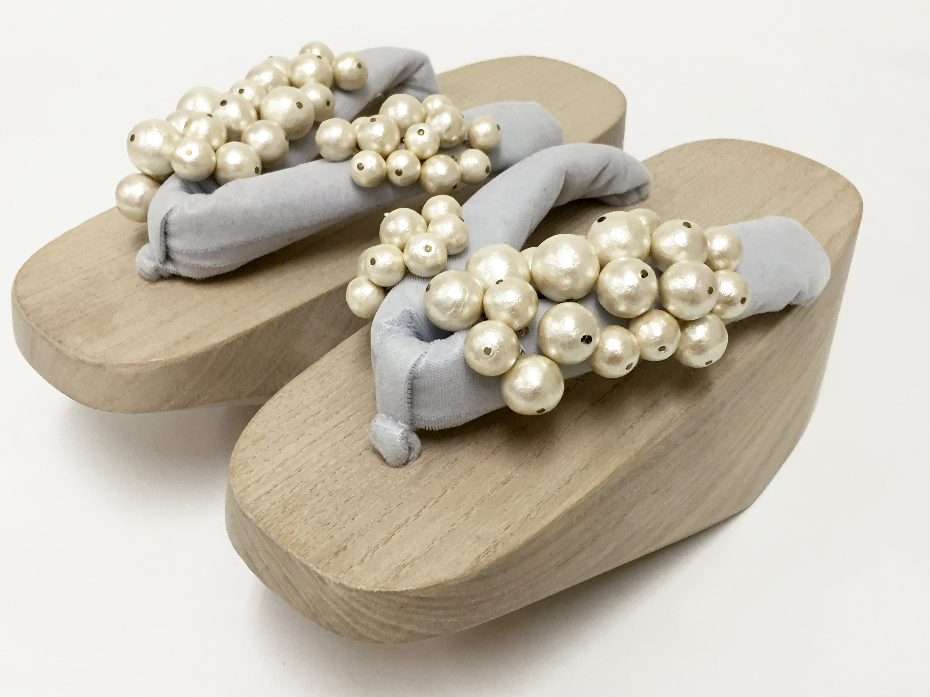 高さのある白木のぽっくりは、振袖に合わせて、成人式、卒業式やパーティの日に。