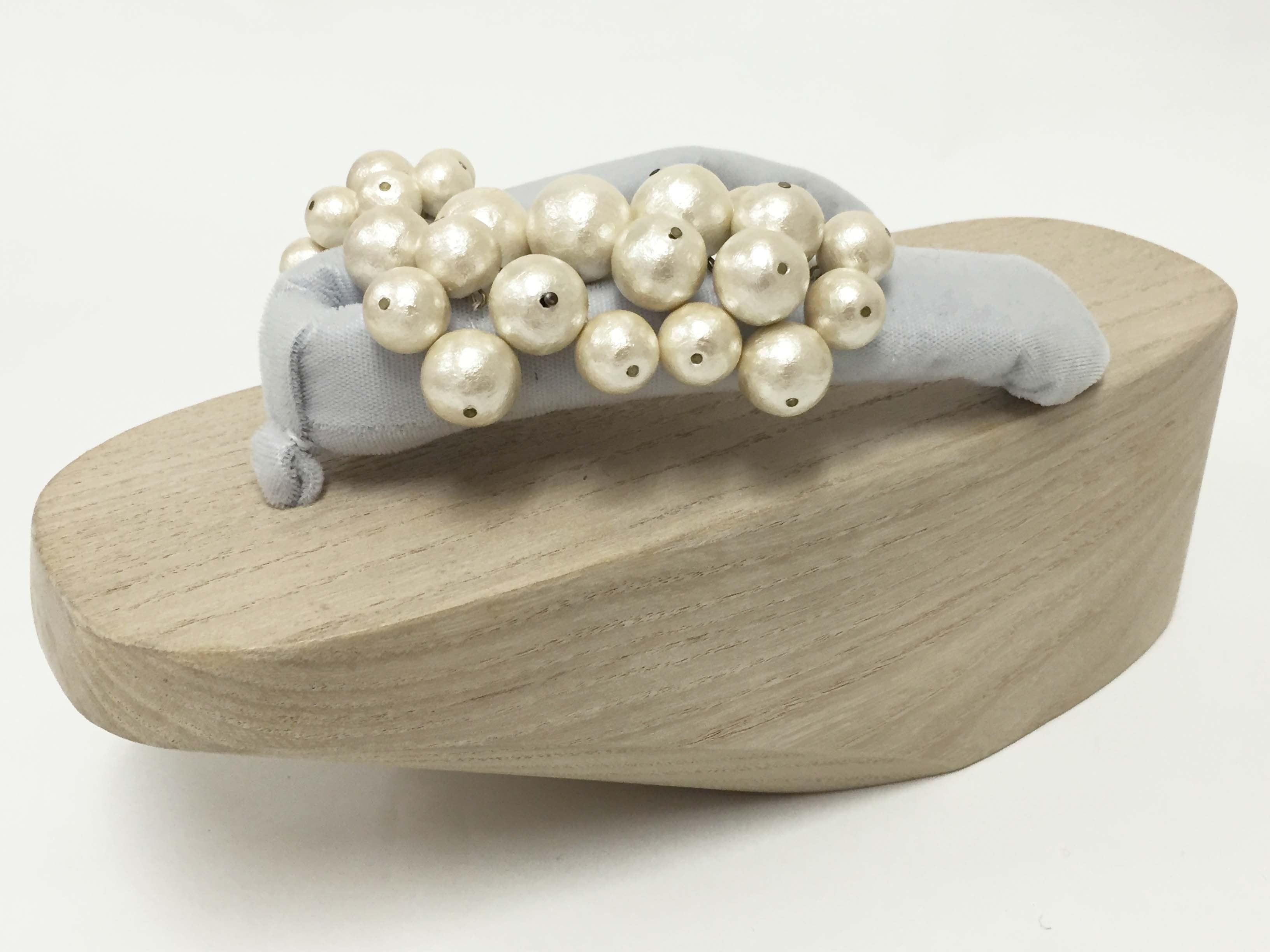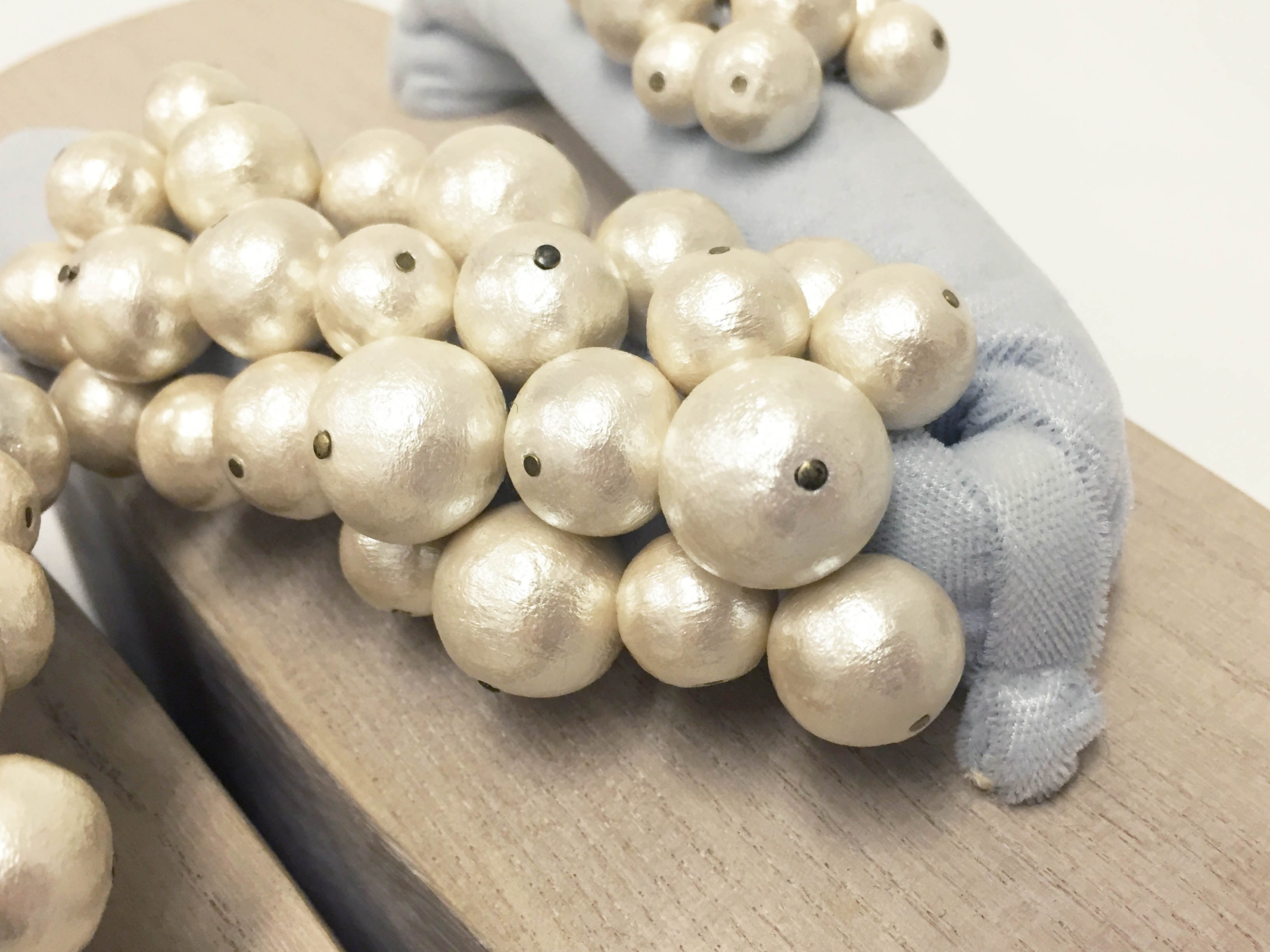 肌あたりの柔らかい上質な本天の太めの鼻緒に、コットンパールを一つずつ縫い止めてつぶつぶたっぷりにしました。