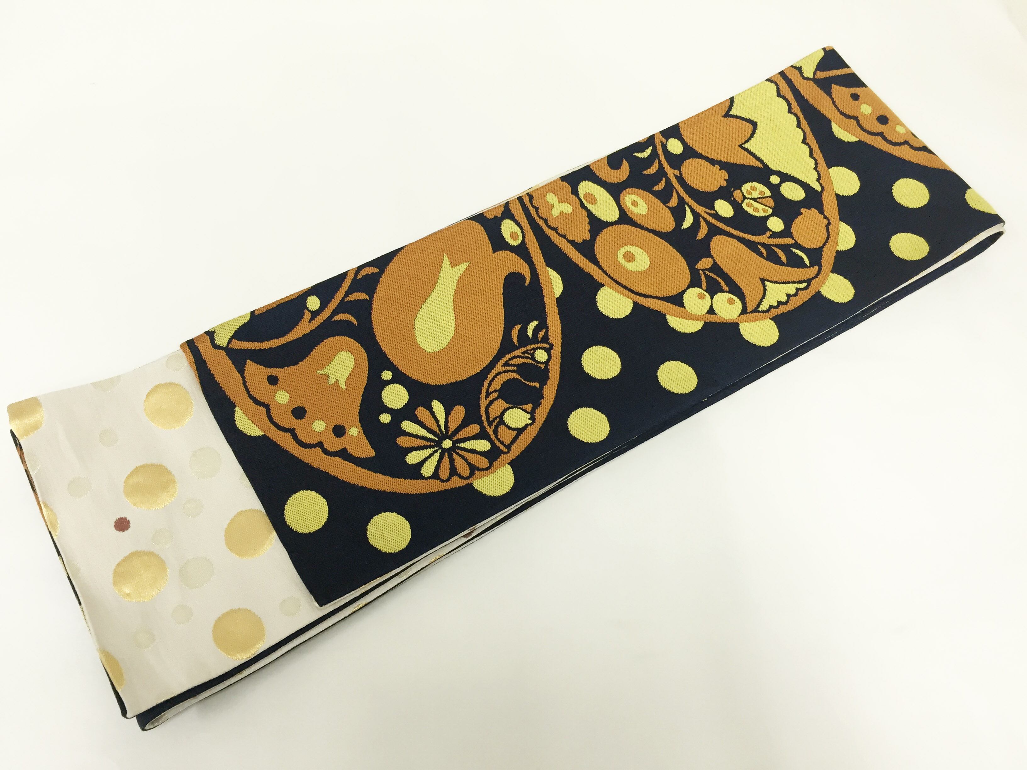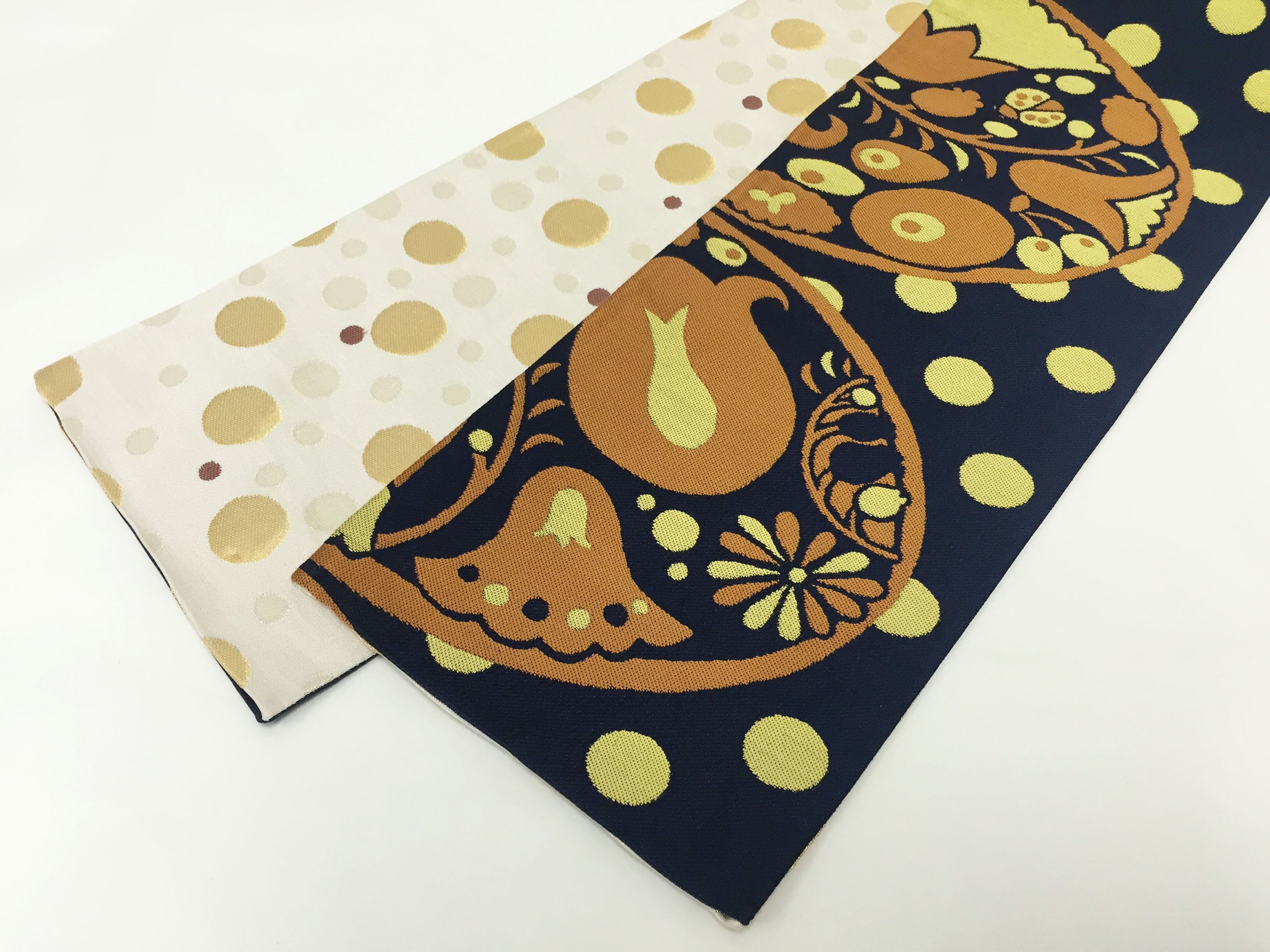 手描きの下絵からデータを起こしてデザインし、京都西陣の機屋さんに織っていただいた西陣織半幅帯です。