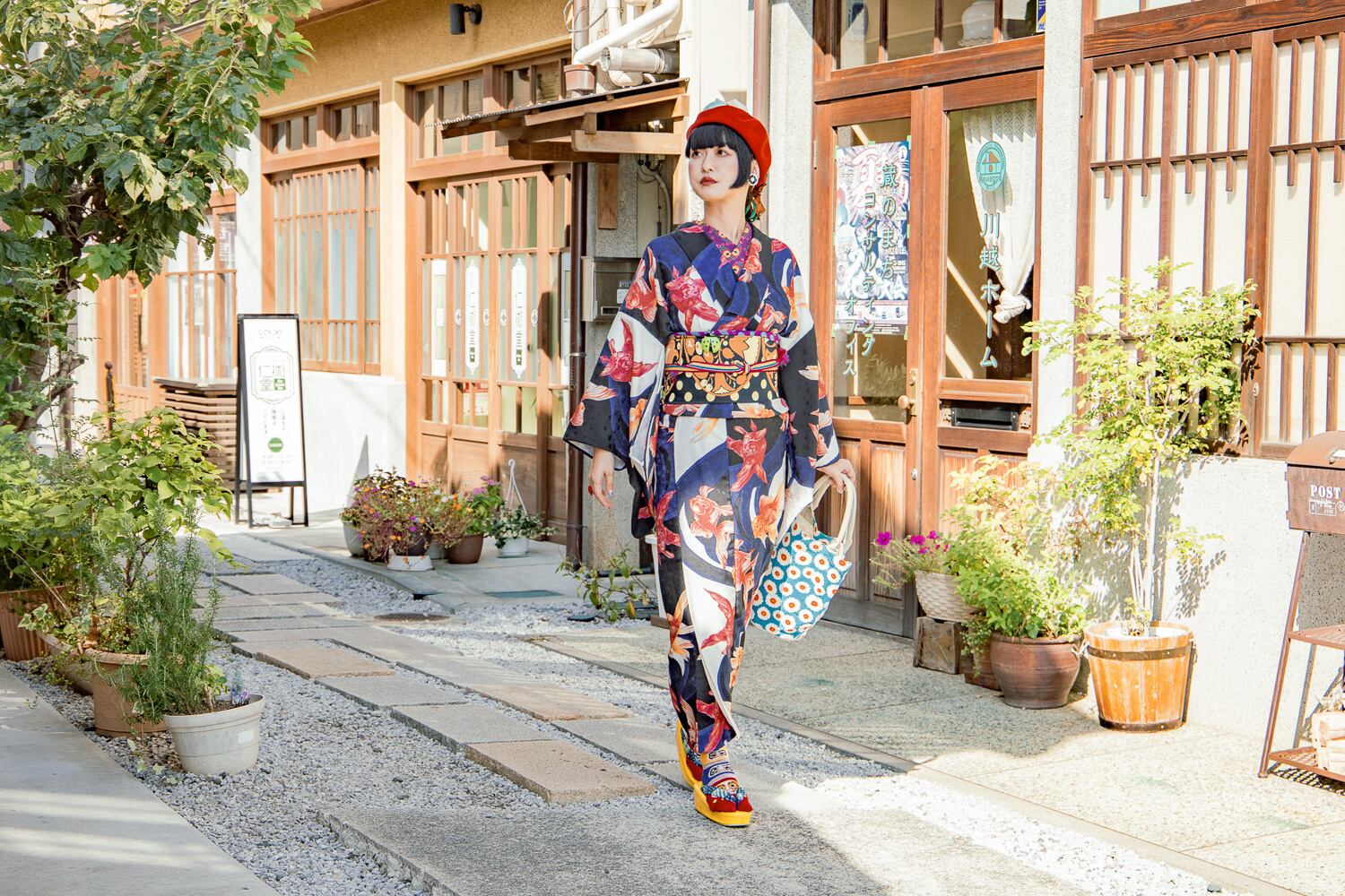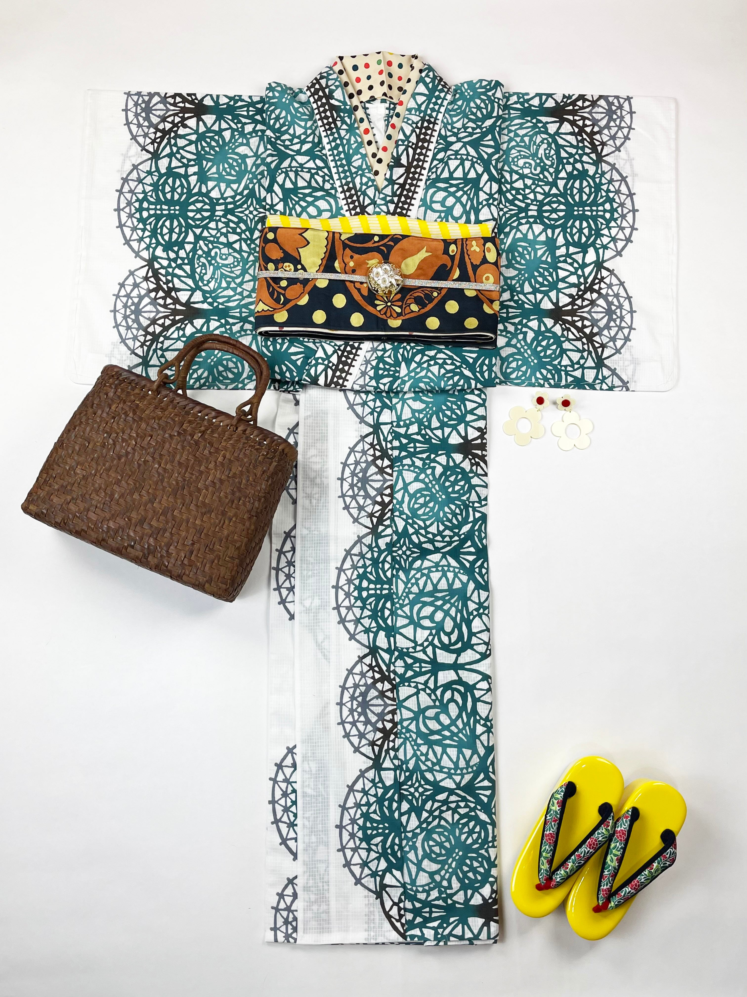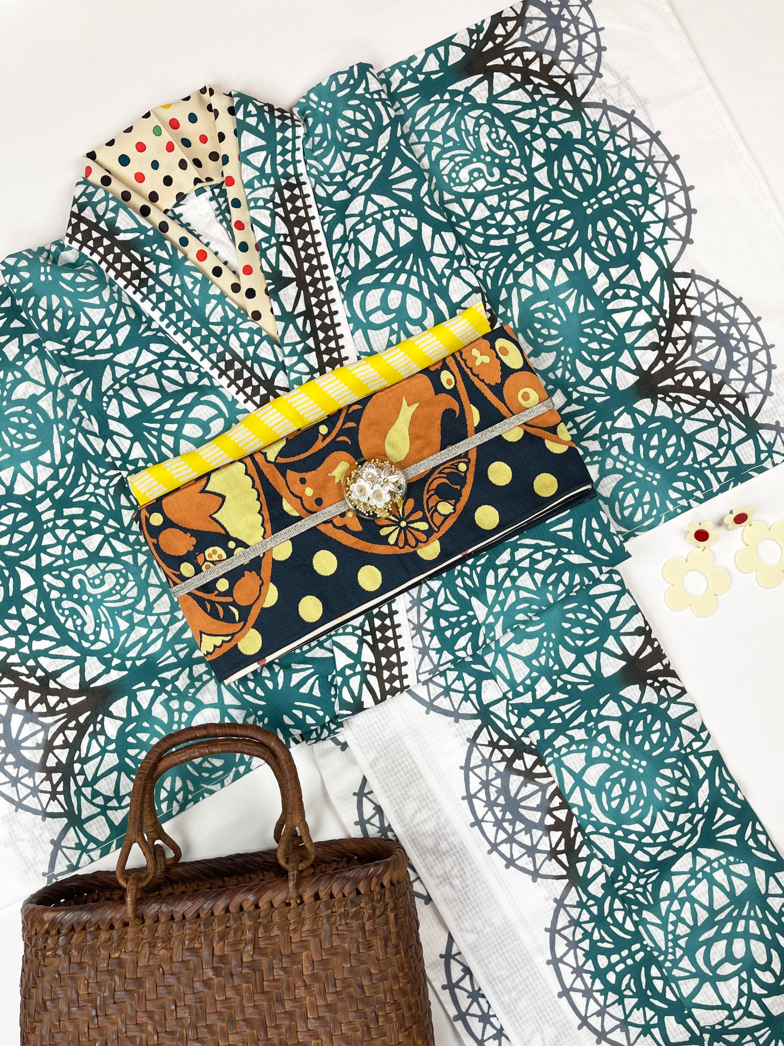 そして、ソーダの泡のような、大きさも動きも不規則なドット柄はどんな着物や浴衣にも合わせやすく、使いやすさは抜群です。