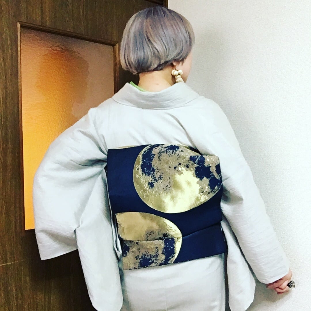 そのため、ご自身で帯巾を半分に折りながらご着用をいただくことになり、リバーシブルでどちらの面でも締めることができます。