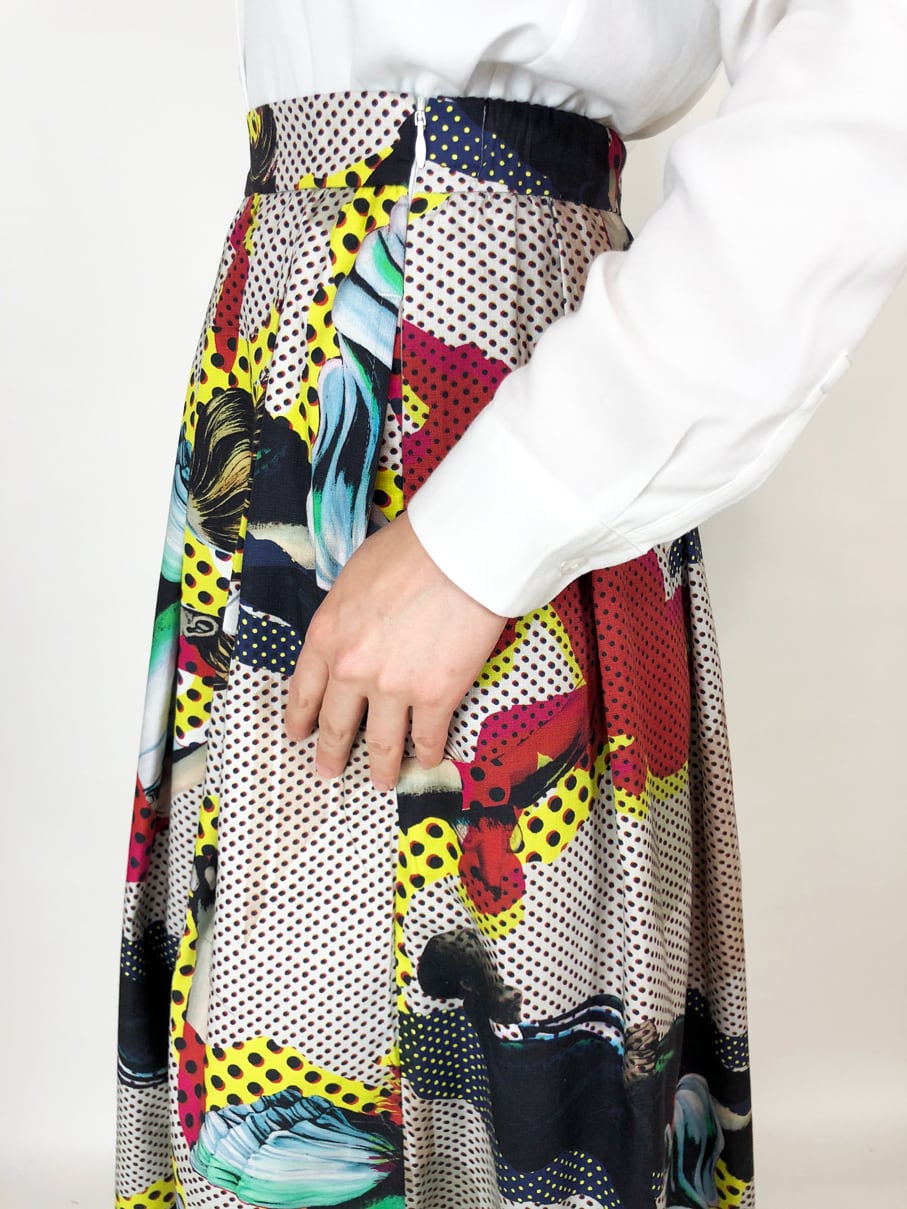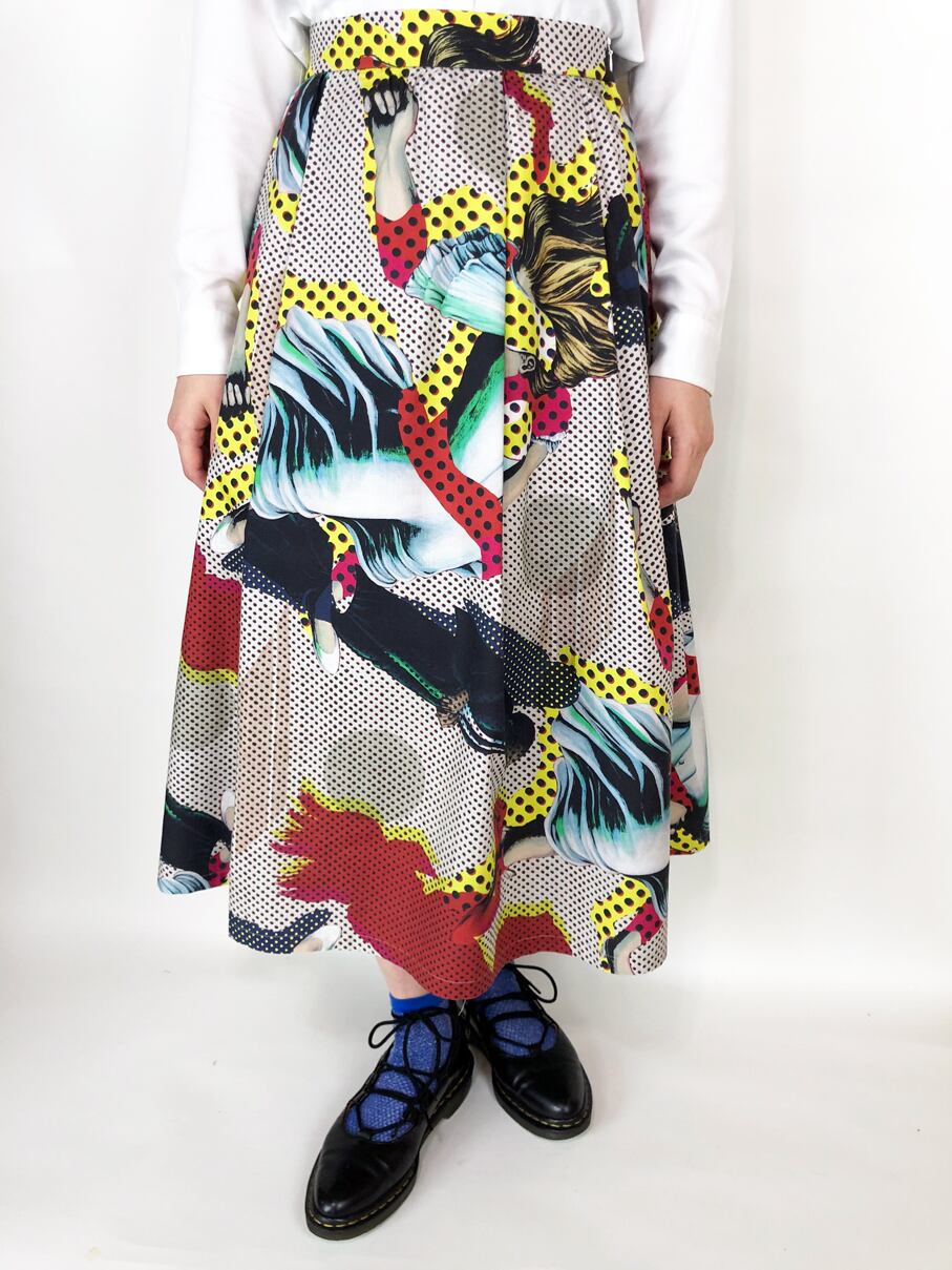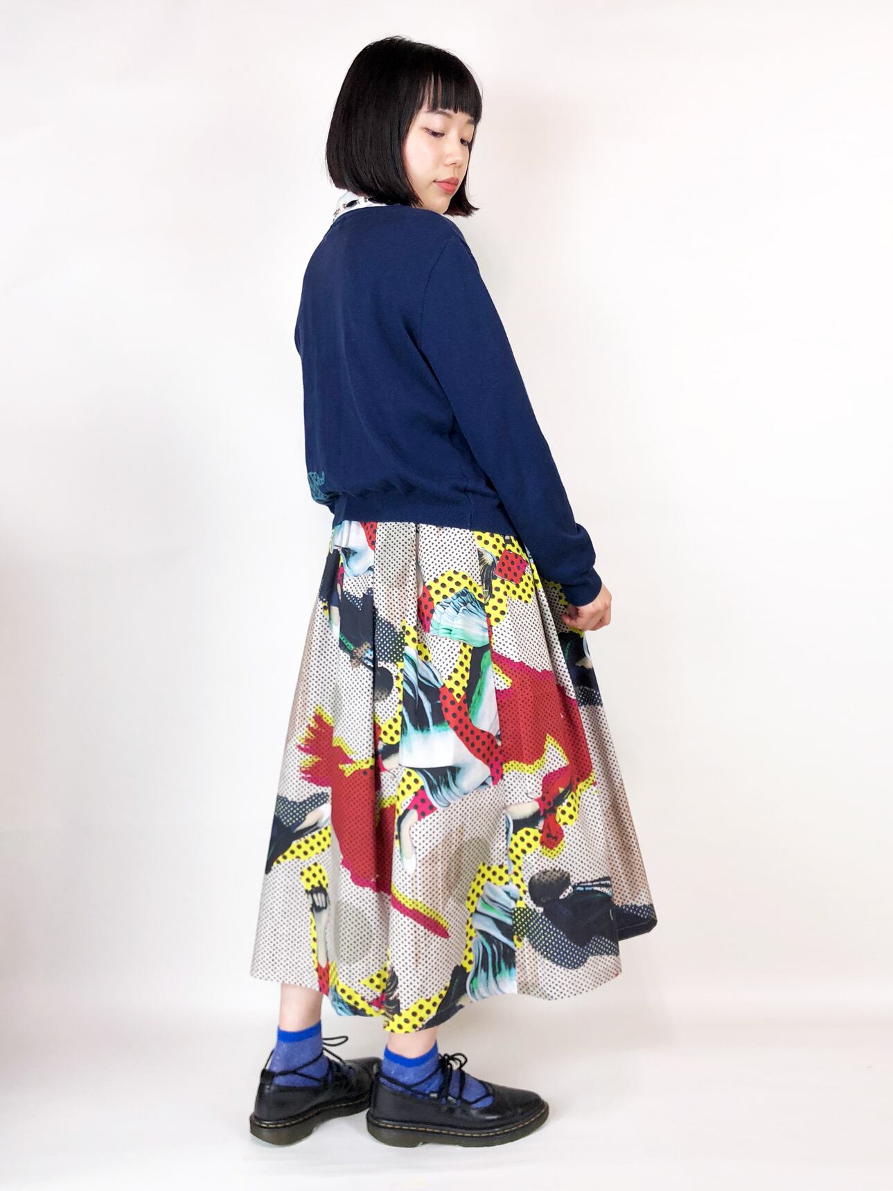 重宗玉緒オリジナルのプリント生地を使用したソフトプリーツスカートです。