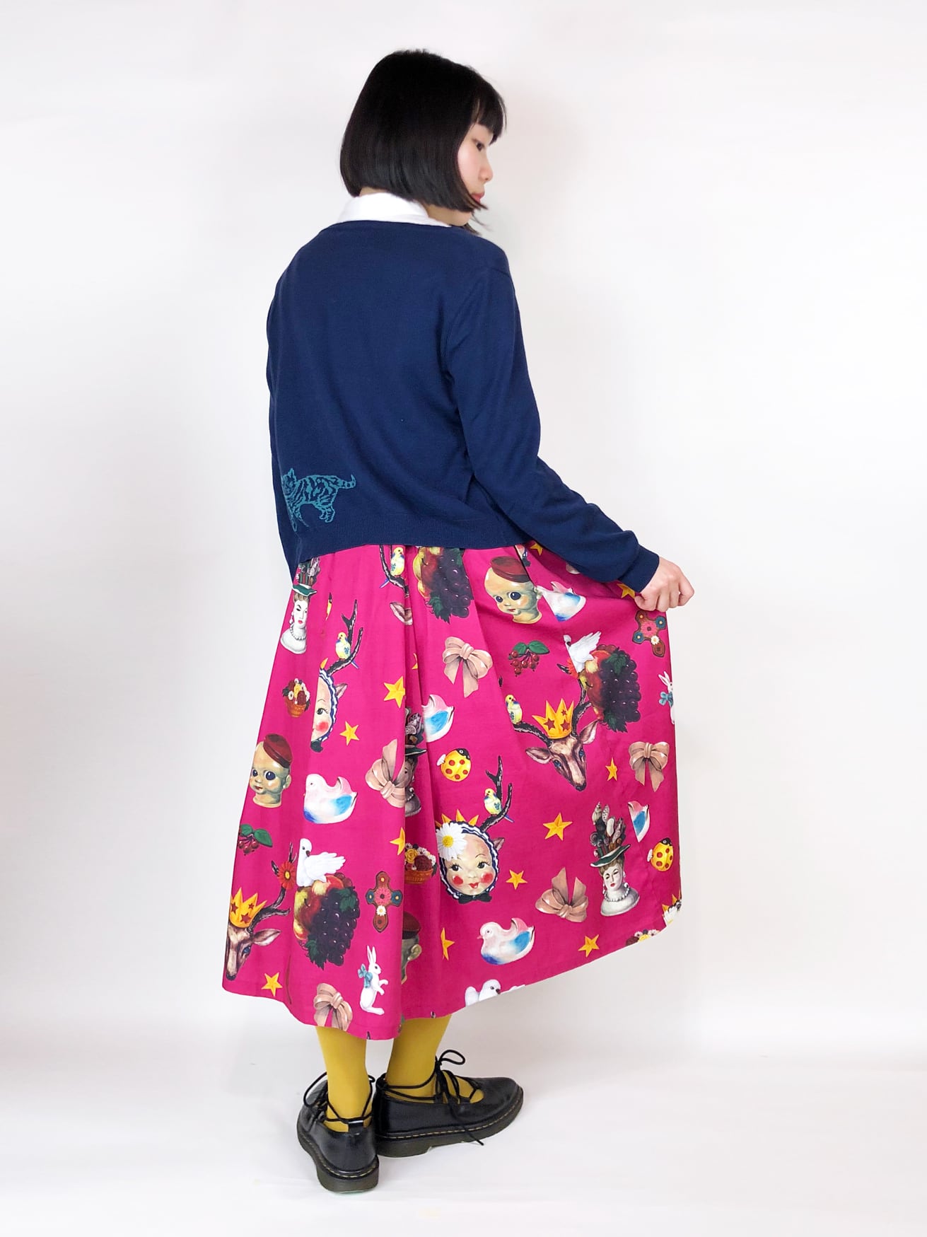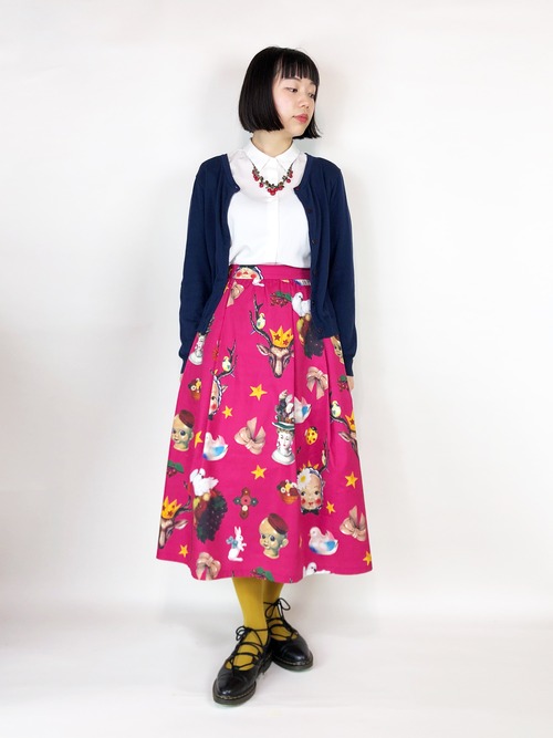 重宗玉緒オリジナルのプリント生地を使用したソフトプリーツスカートです。