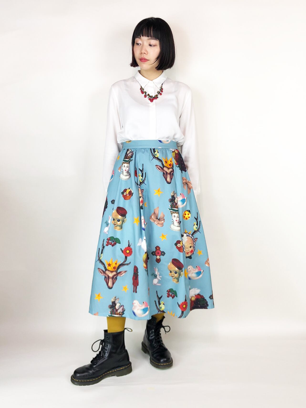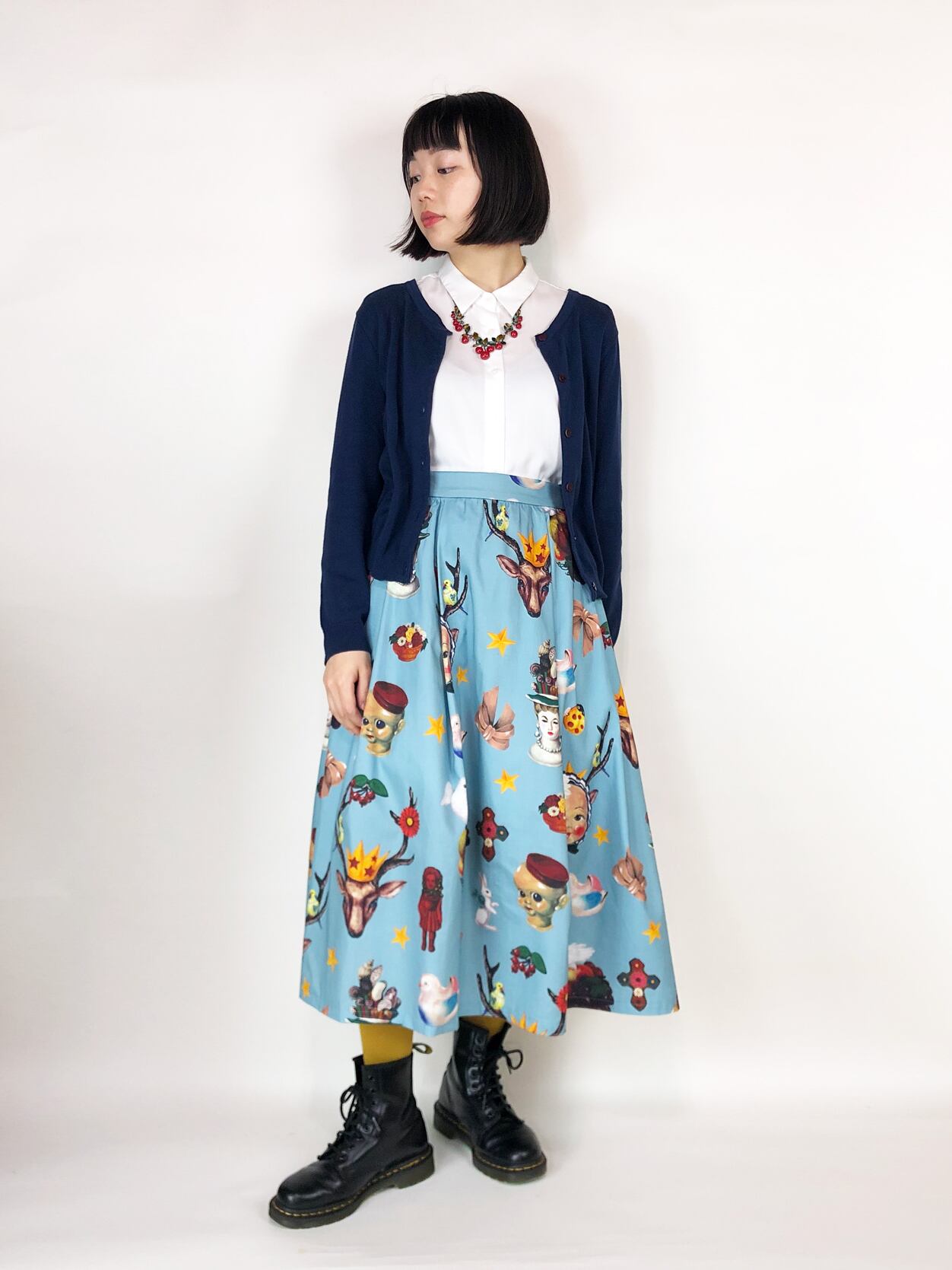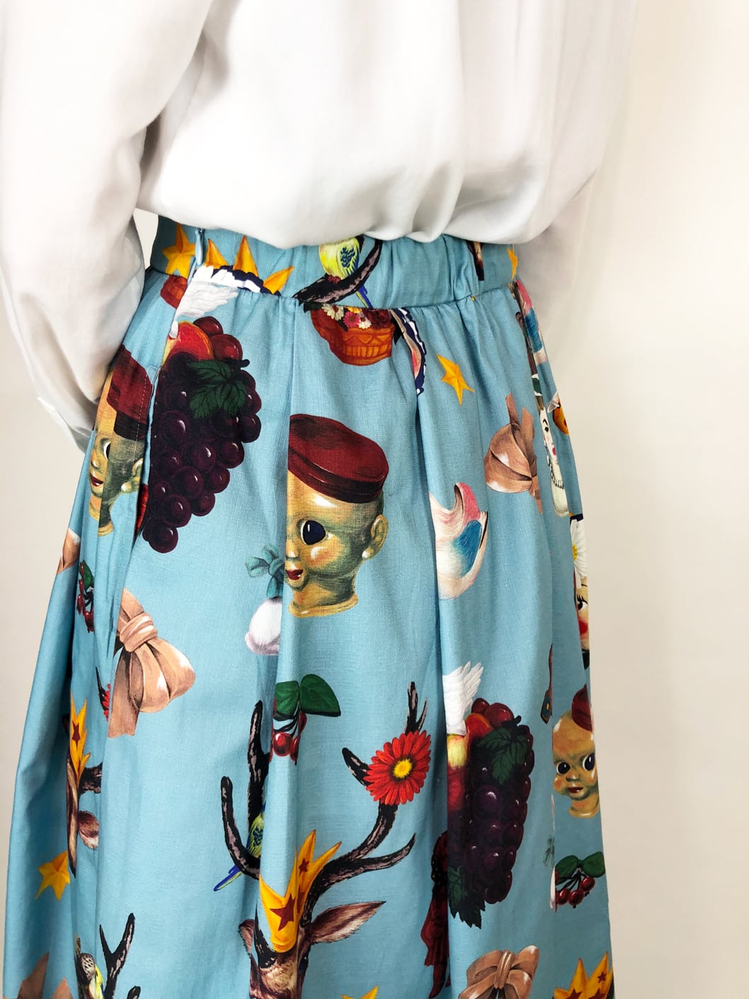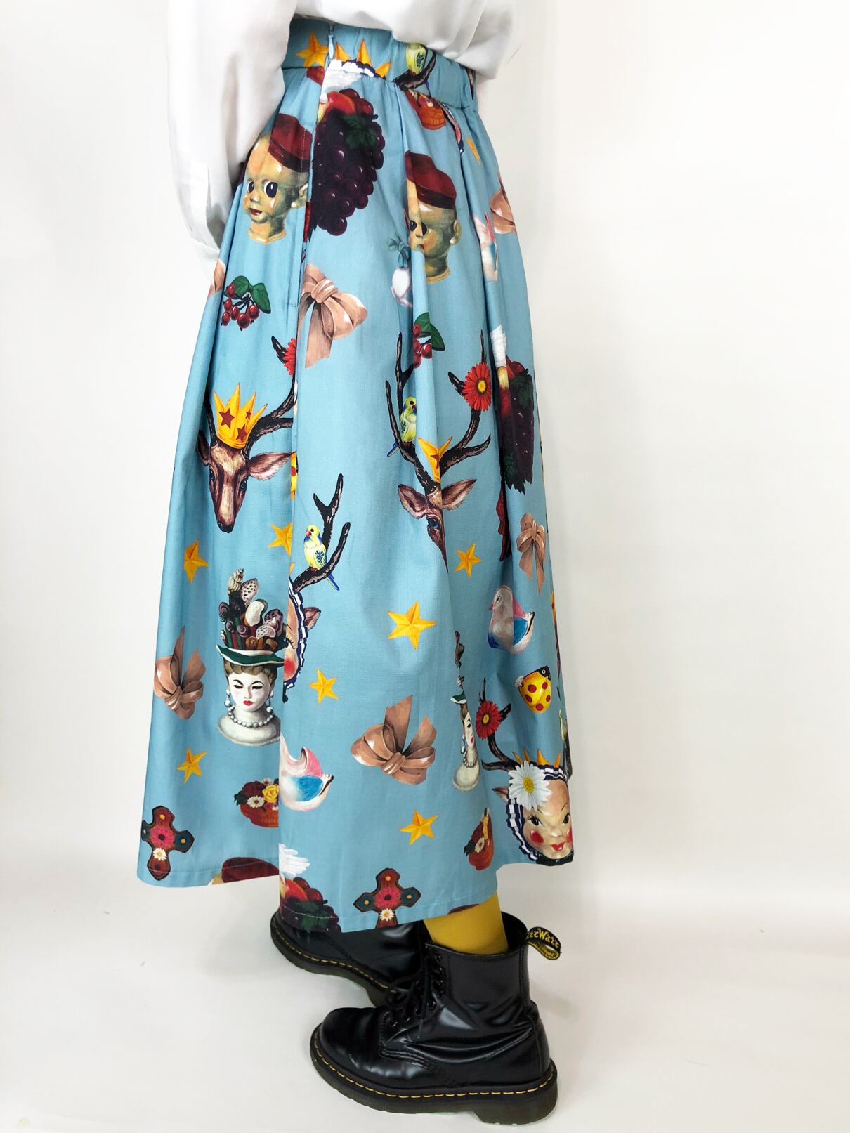 重宗玉緒オリジナルのプリント生地を使用したソフトプリーツスカートです。