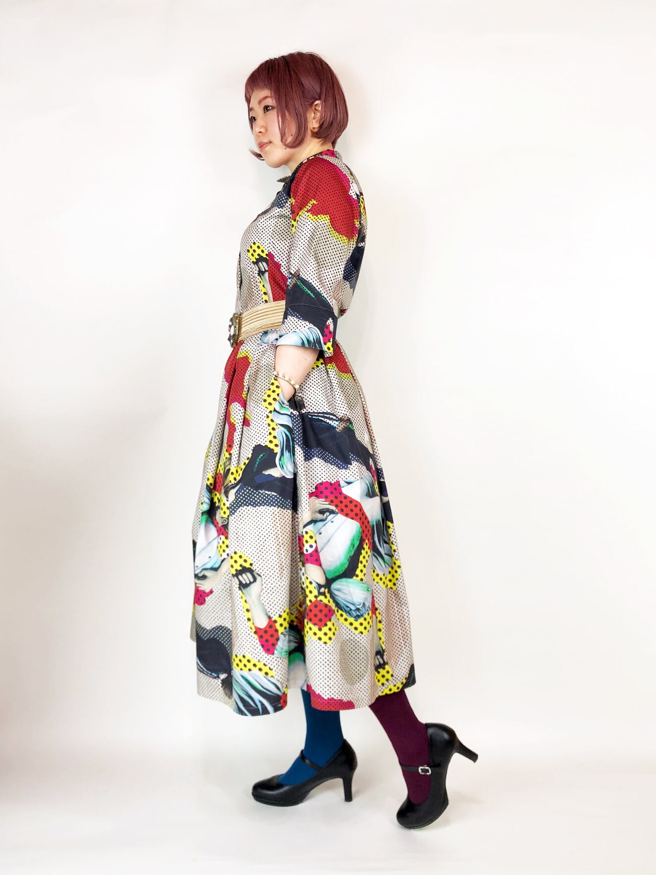 写真12〜14は別柄ですが、ワンピースの上にスカートを合わせた場合の着用例です。)