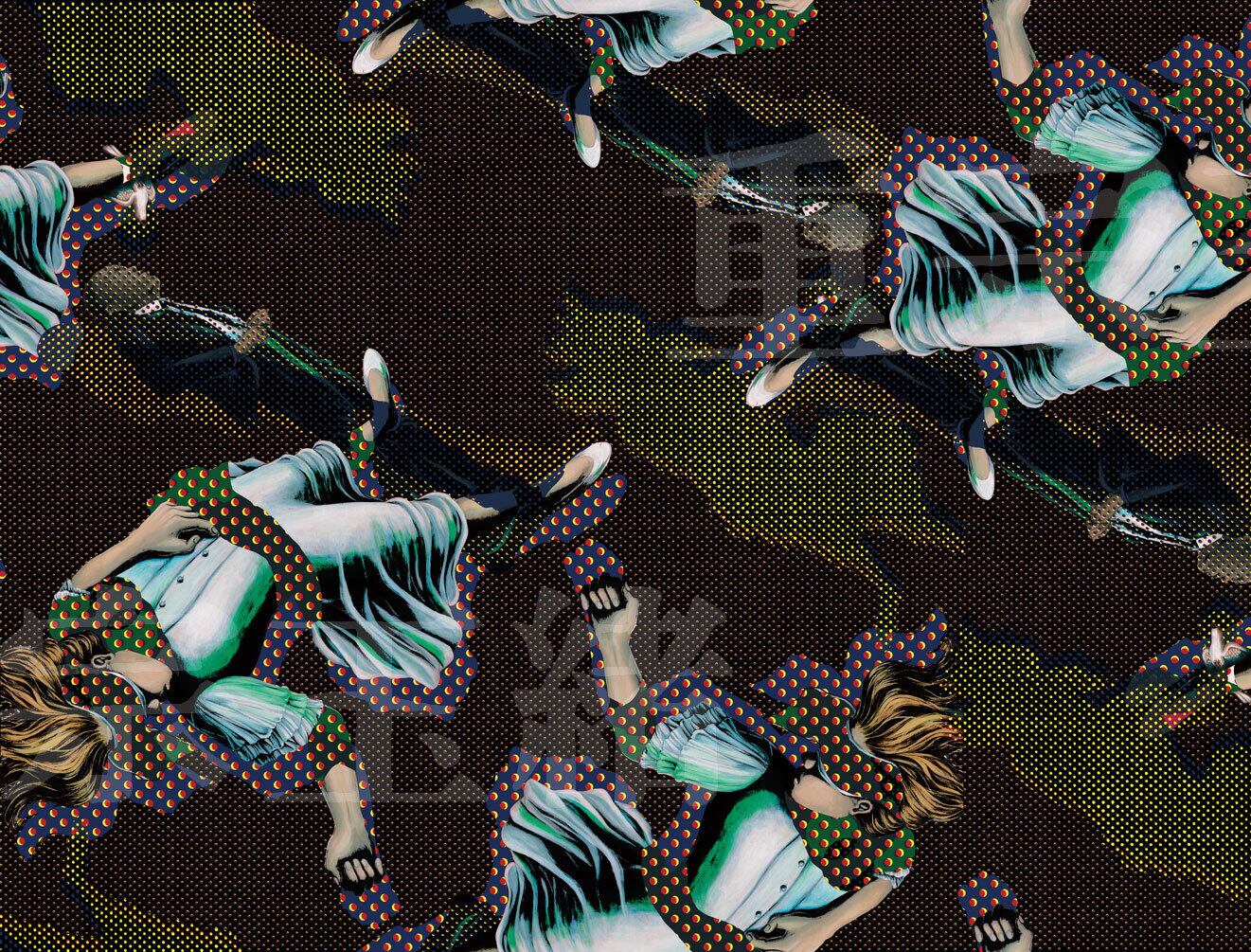 「メメント・モリ」「マーダーケース」という重くダークなものに見えるテーマを、ポップでエネルギーに満ちたデザインに変換して、生地のデザインに落とし込みました。