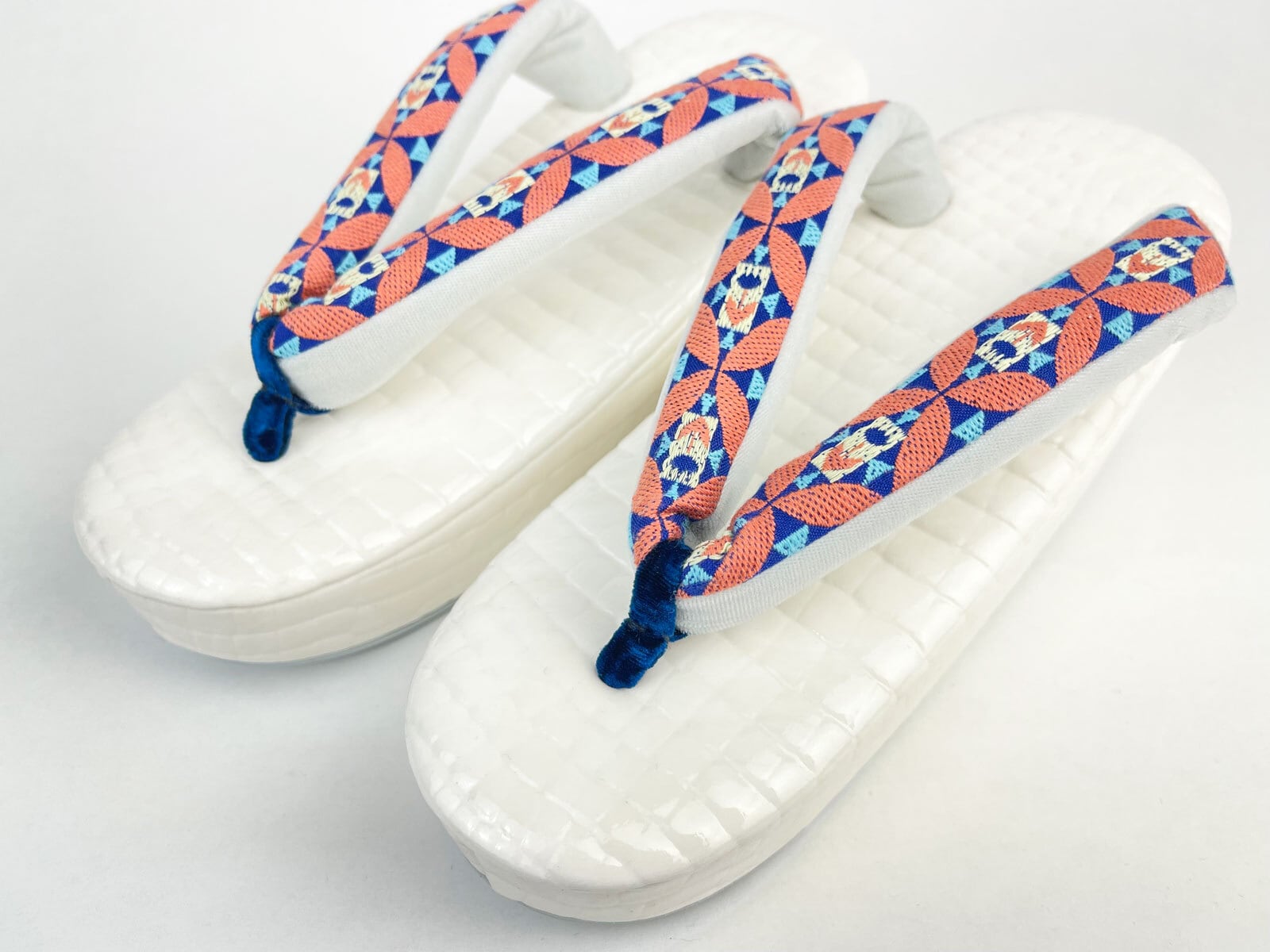 台のスッキリしたホワイトに可愛いらしい鼻緒と組み合わせが