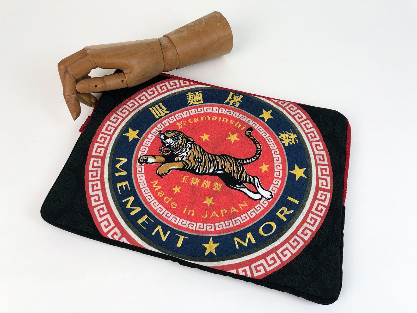 重宗玉緒オリジナルのプリント生地を使用したタブレットバッグ。