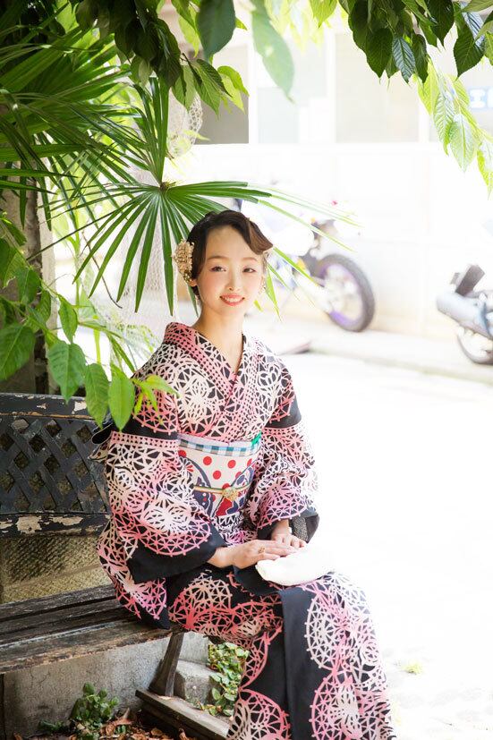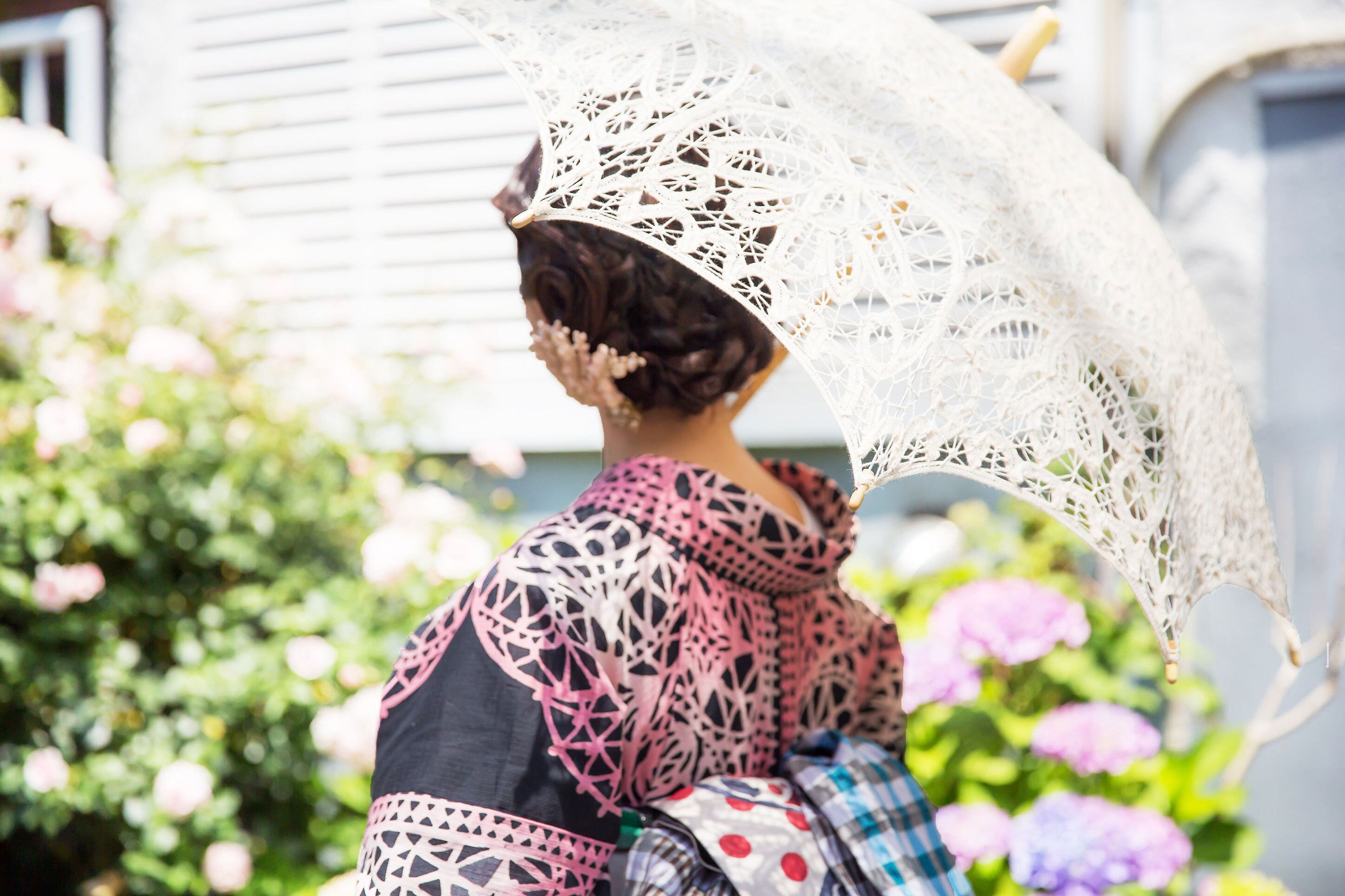 綿紅梅は半襟をつけることで、浴衣としてではなく夏の着物としての着用が可能です。