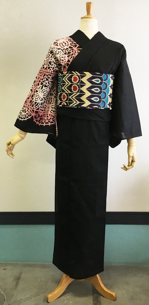 どんな帯でも合わせやすく、片身がわりならではのかっこよさと大人っぽさがあります。