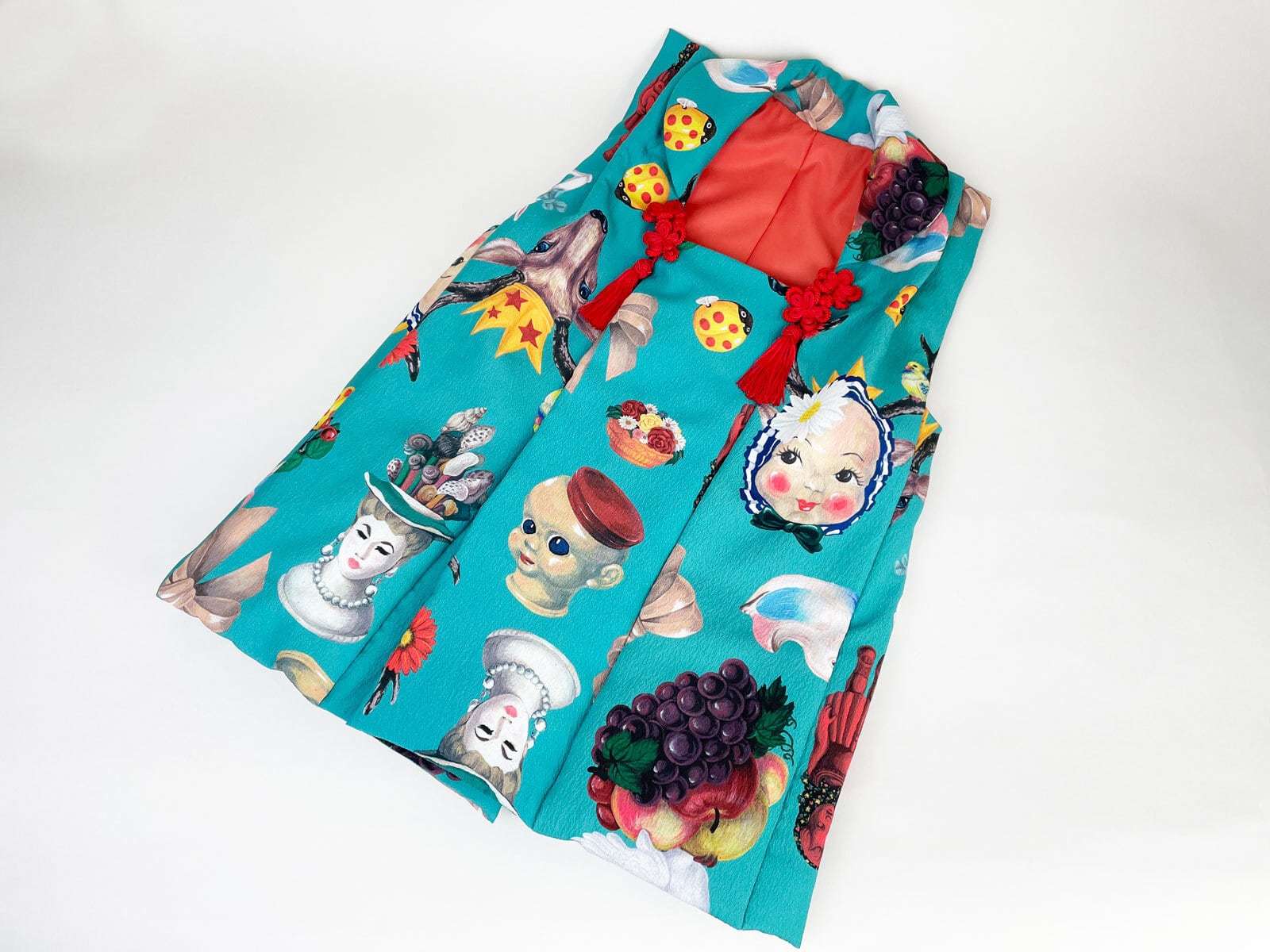 シスター社×重宗玉緒のコラボ柄「Rico's room」で三歳児用の被布を作りました。