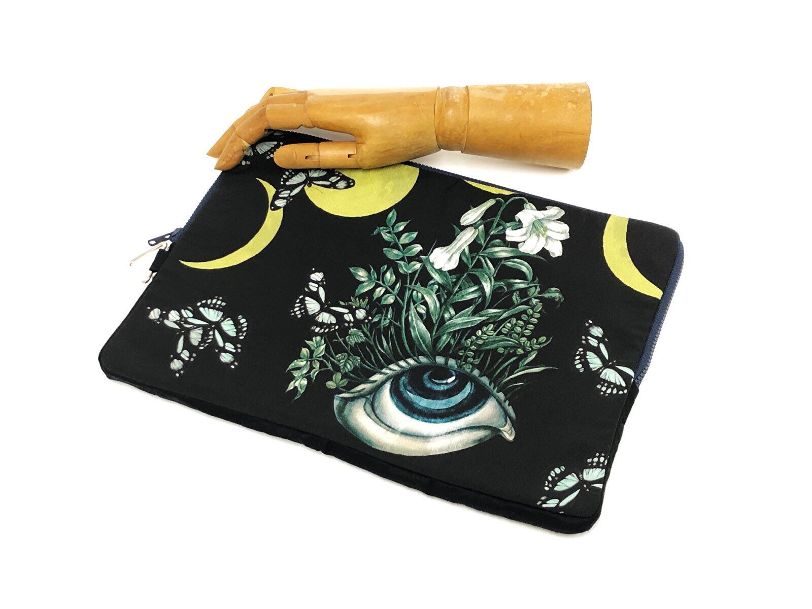 重宗玉緒オリジナルのプリント生地を使用したタブレットバッグ。