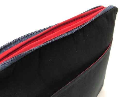 裏面はブラック、ファスナーにはネイビーでシックな印象に。