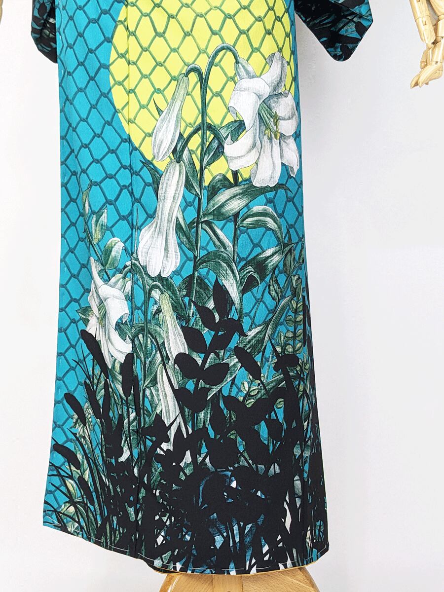 ★こちらは絵羽の柄付けですが、生地を染色する過程の都合上、ベースの模様はぴったり合わない場合があります。あらかじめご了承ください。