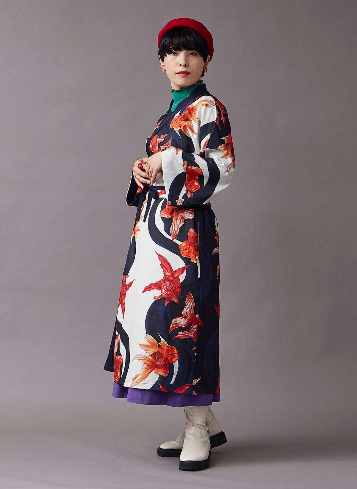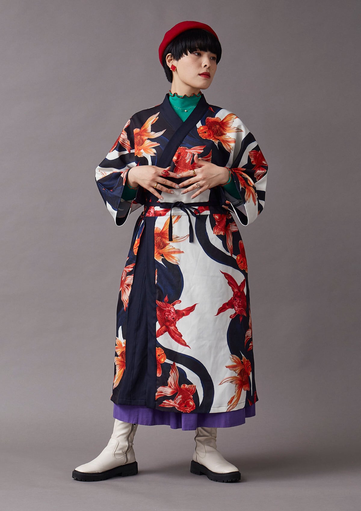 倭物やカヤ×重宗玉緒コラボ モダンキモノワンピース KINGYO