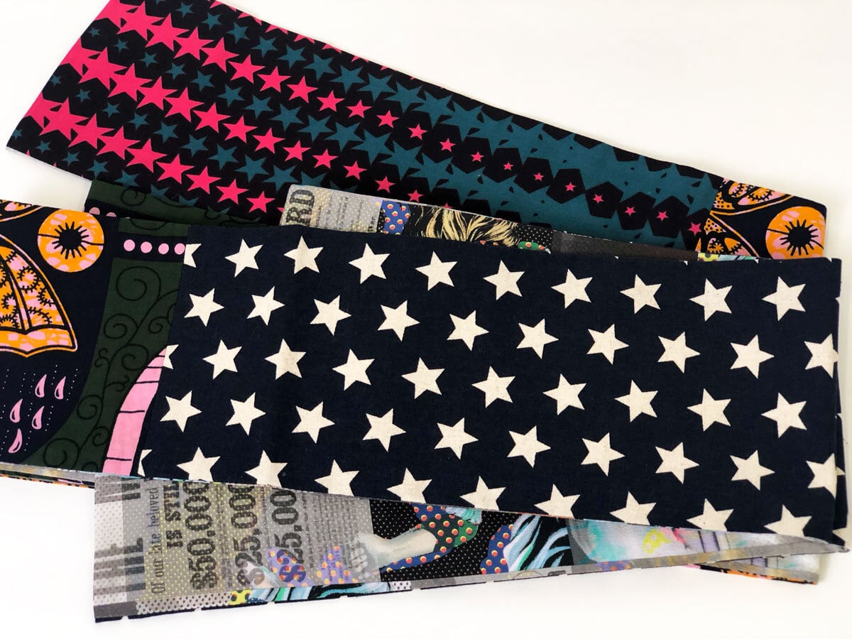 裏側は3種類のコットン生地を継いで仕立てているので、一本で複数のデザインを楽しめます。