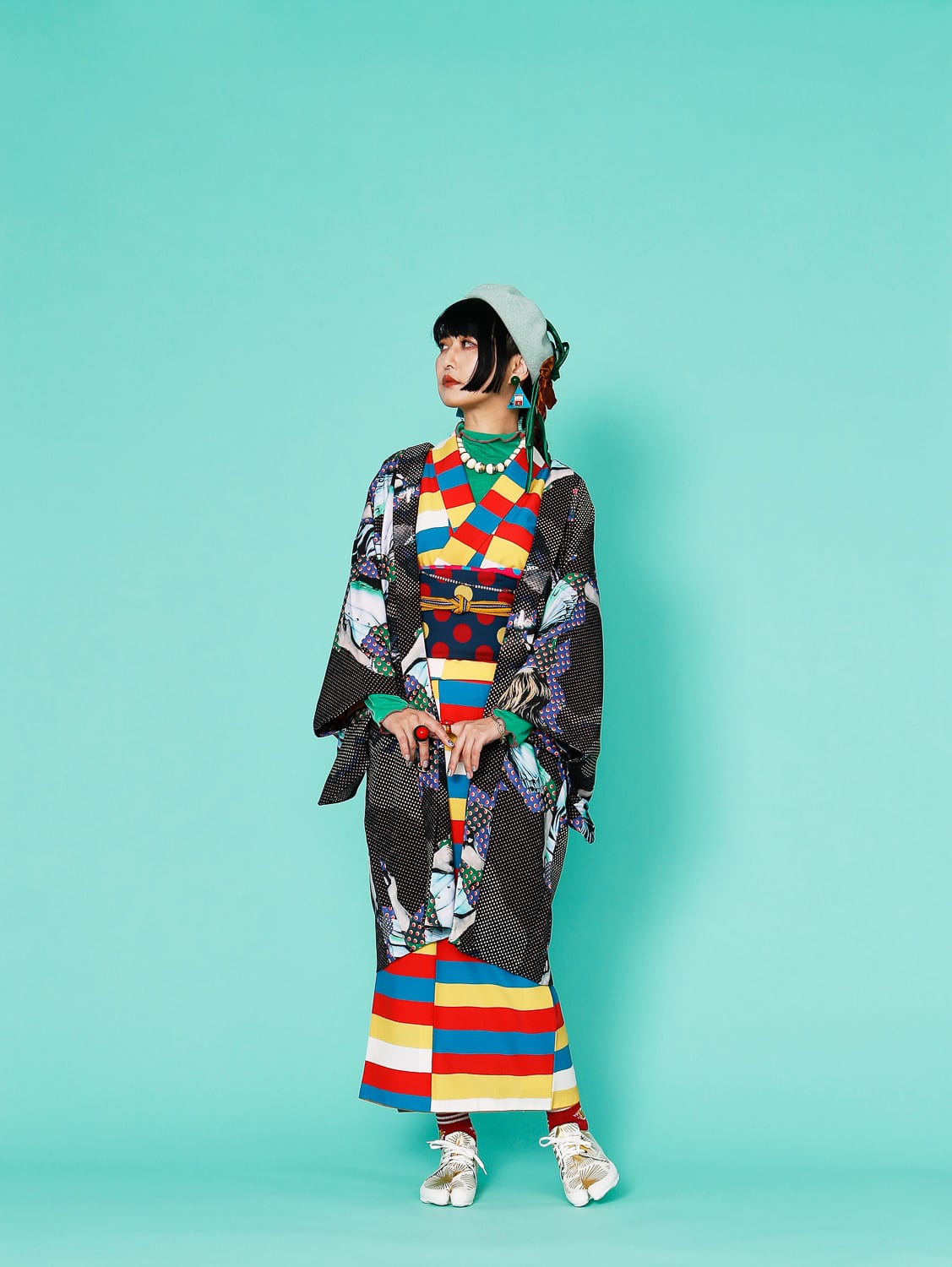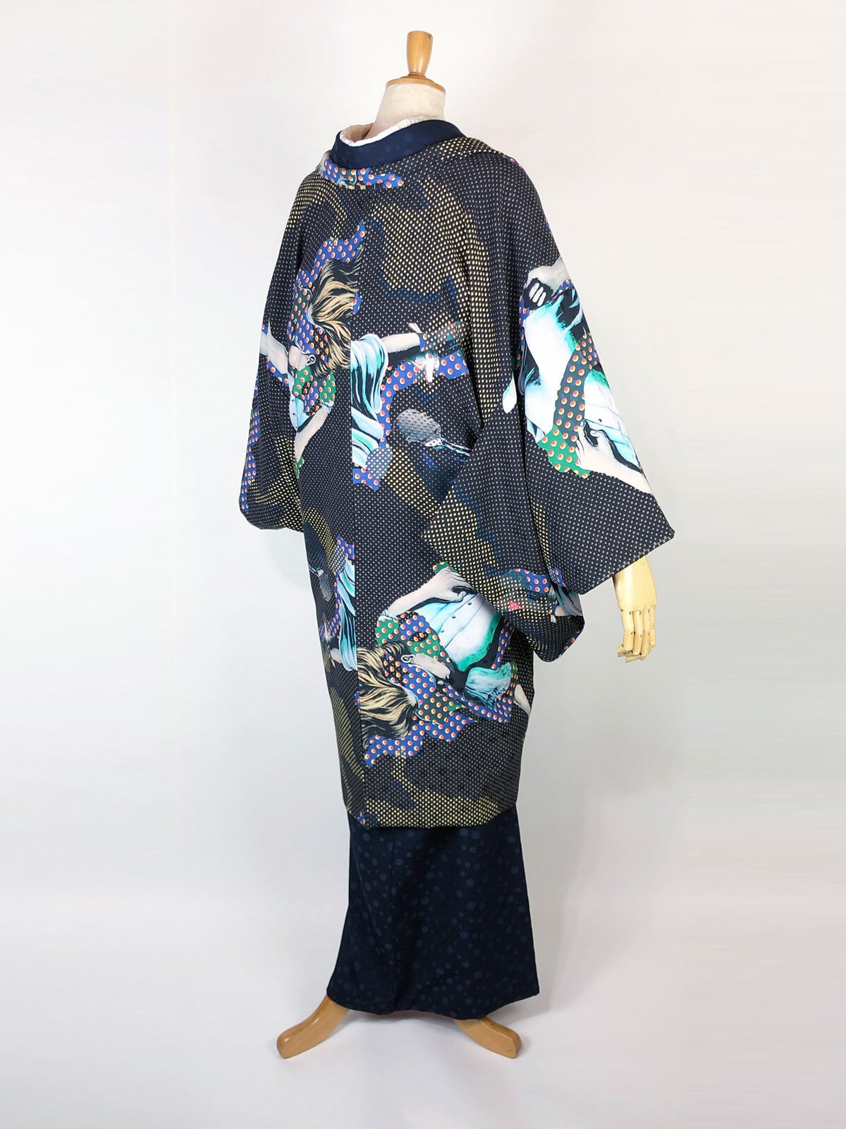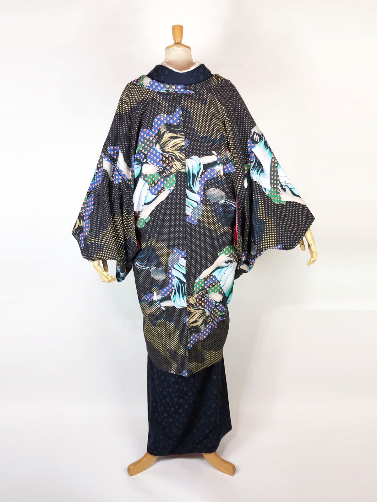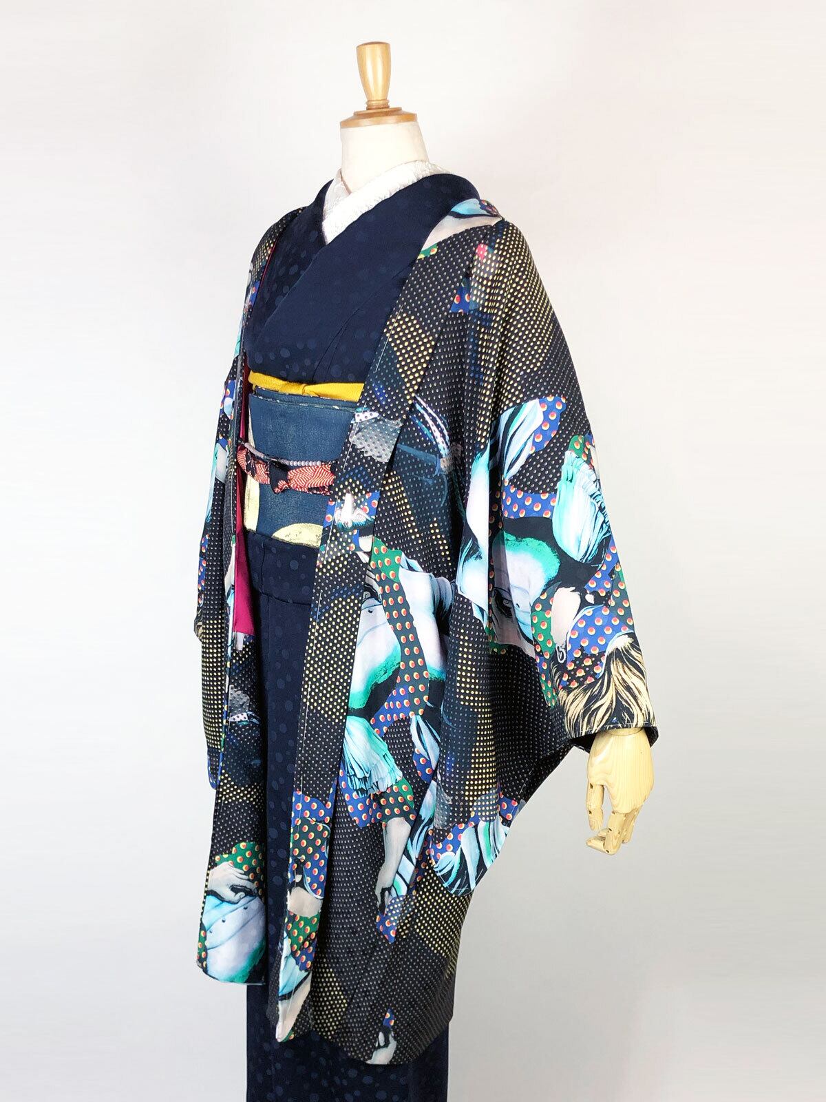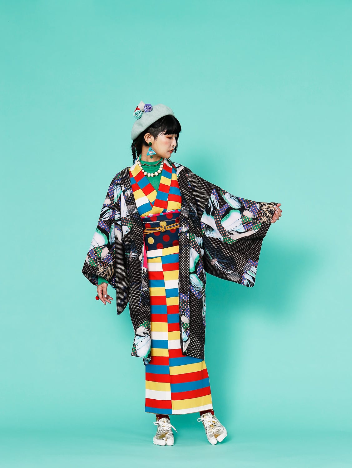 重宗玉緒がニューヨーク・メキシコを旅して見たものから着想してデザインした「Murder Case」柄の羽織です。