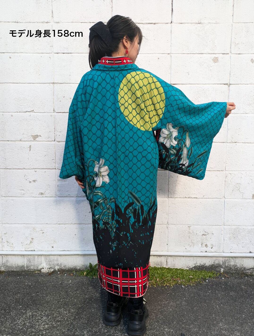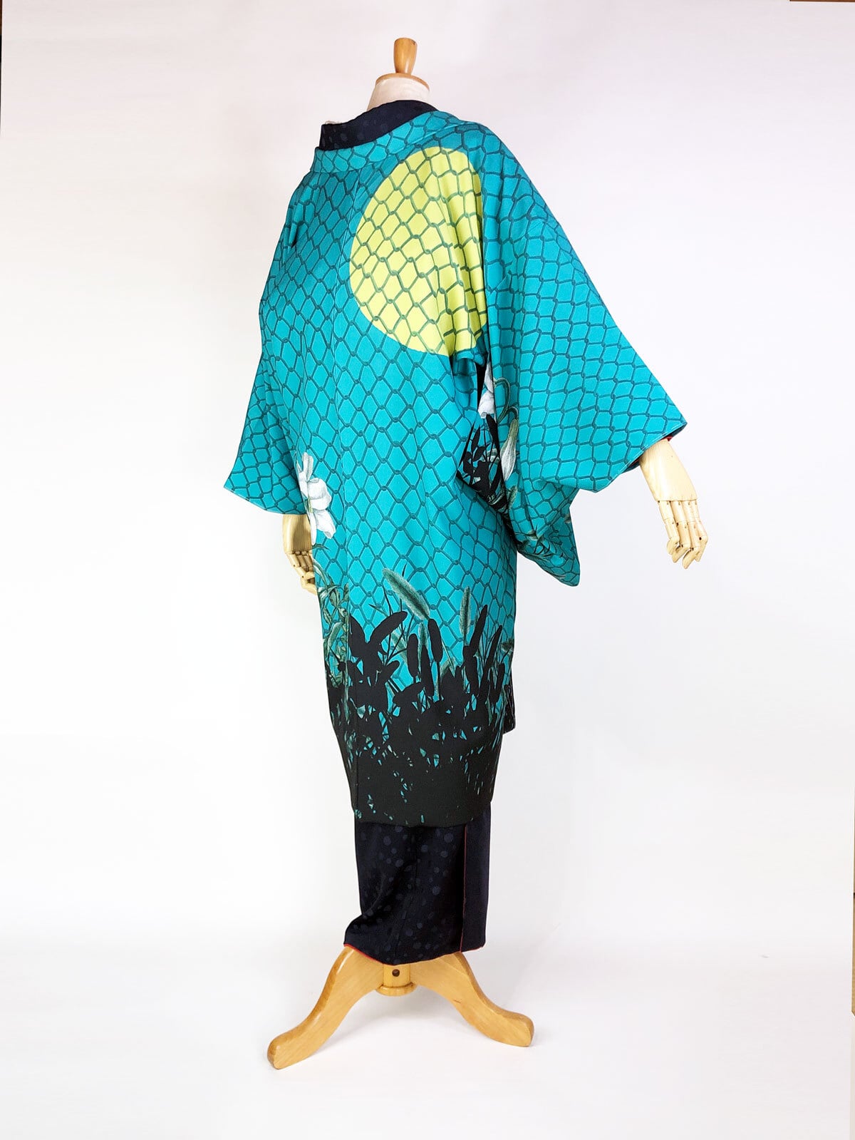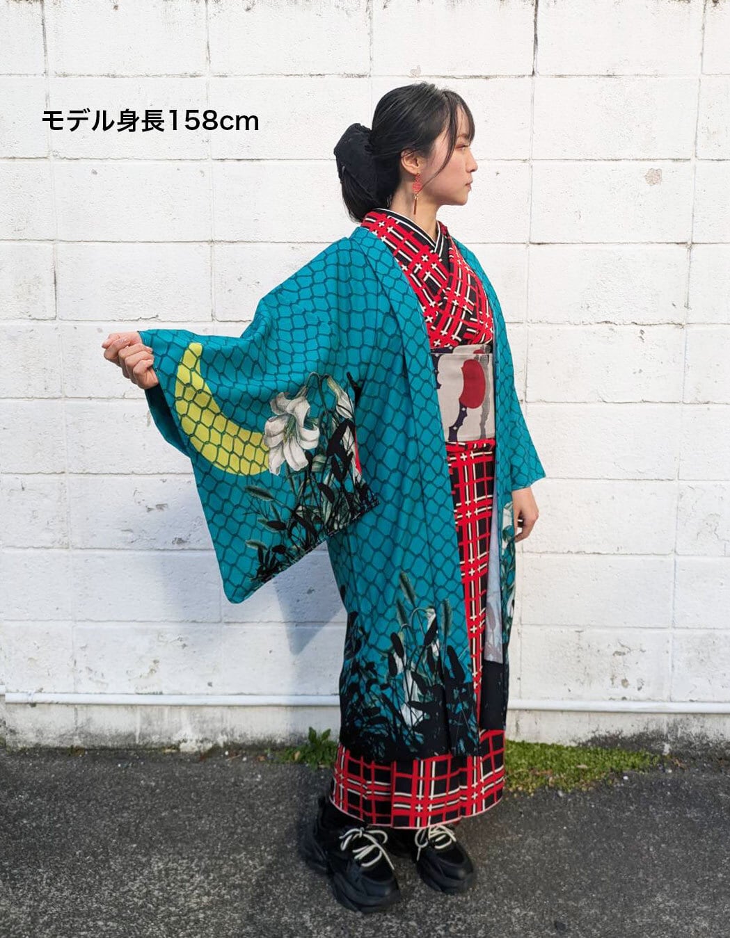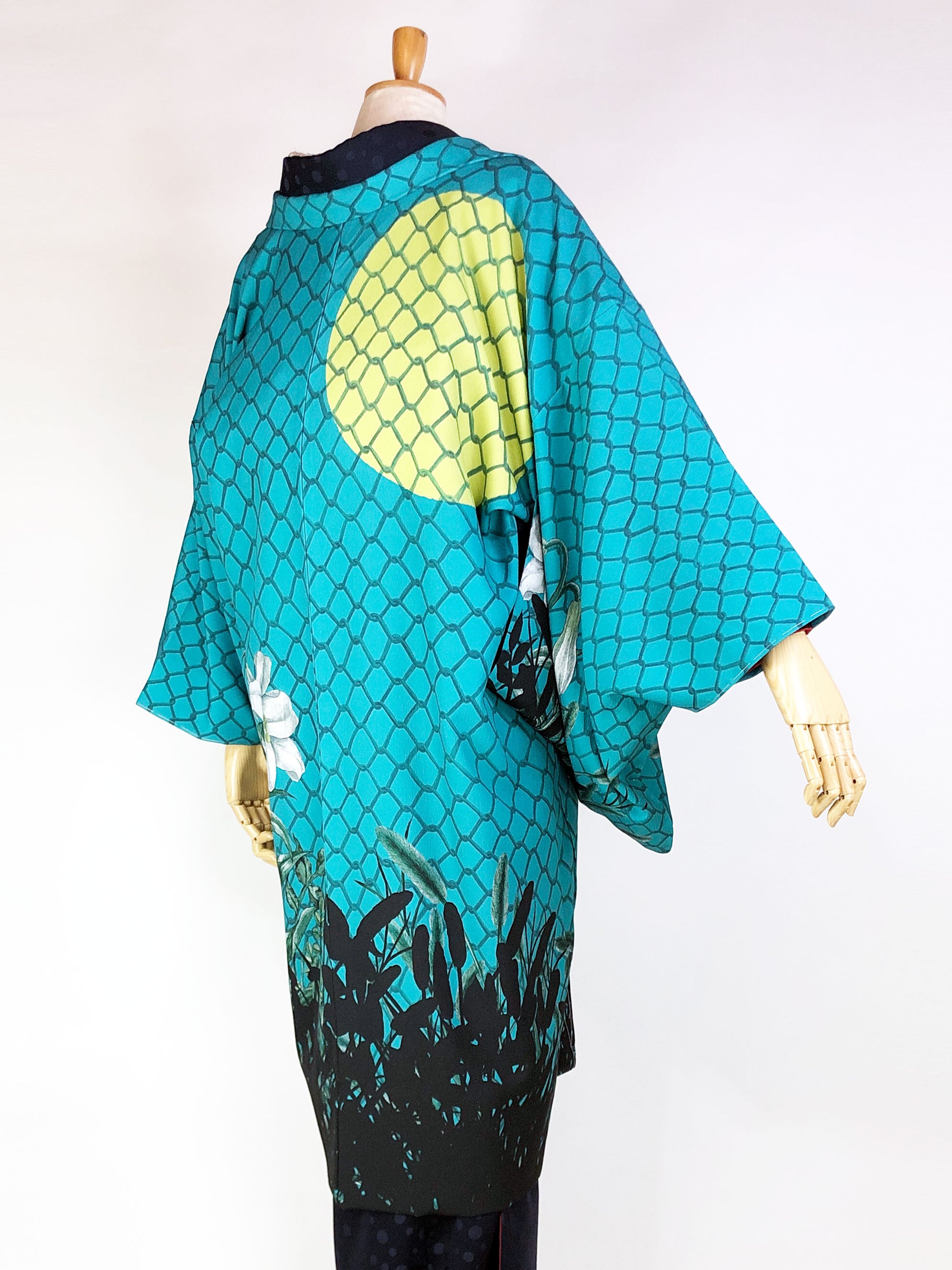 【M寸即納品あり】ポリエステル単衣絵羽織 「境界線」ターコイズ