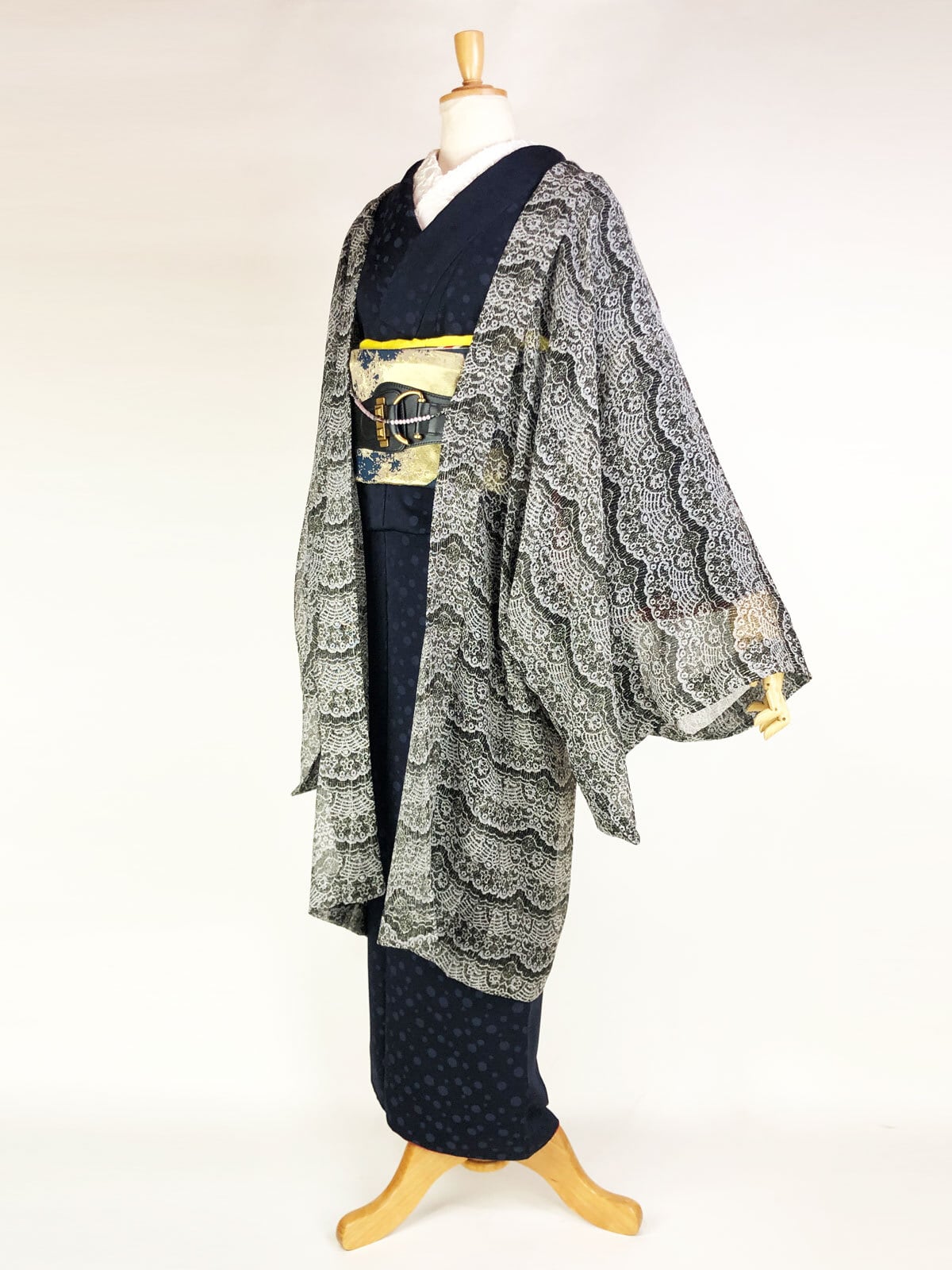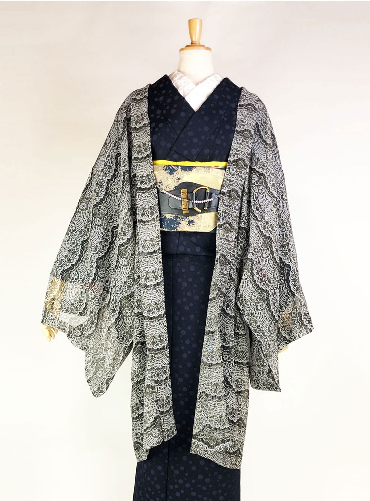エレガントでどんなお着物にも合わせやすいグレーのレース柄