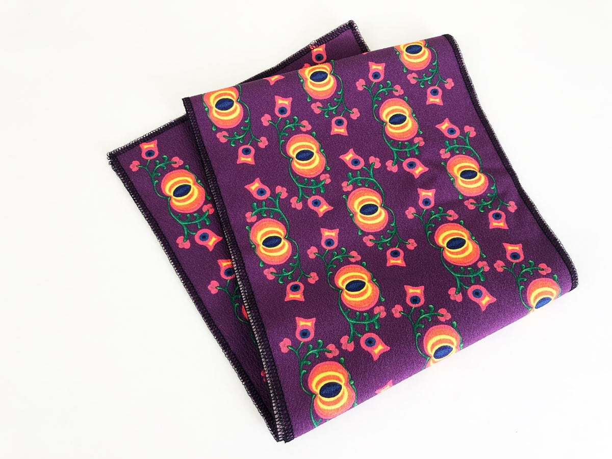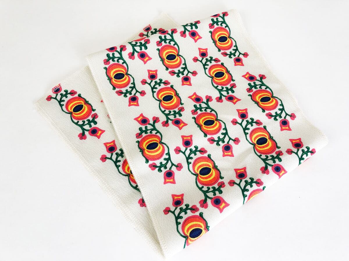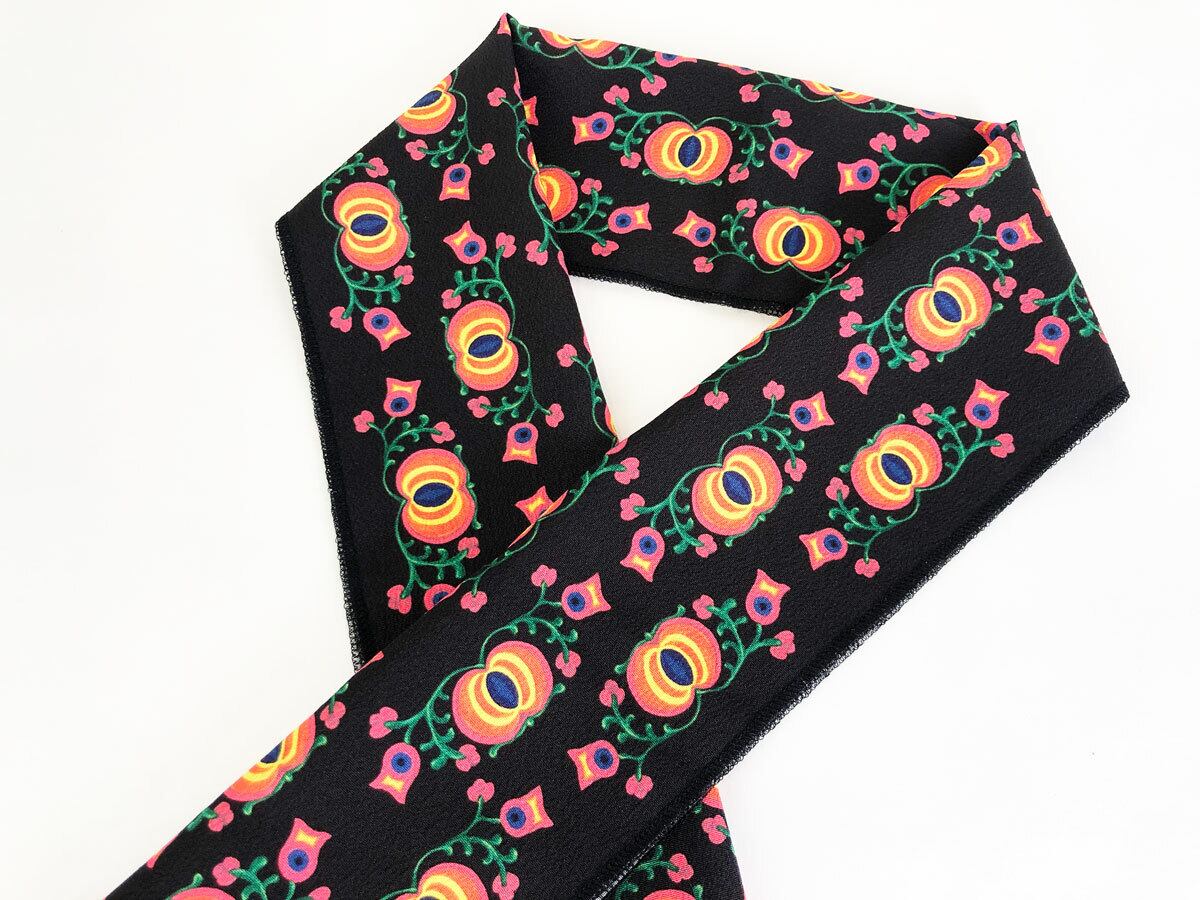 ポップなカラーリングの不思議なお花柄がかわいいポリエステル半衿です。