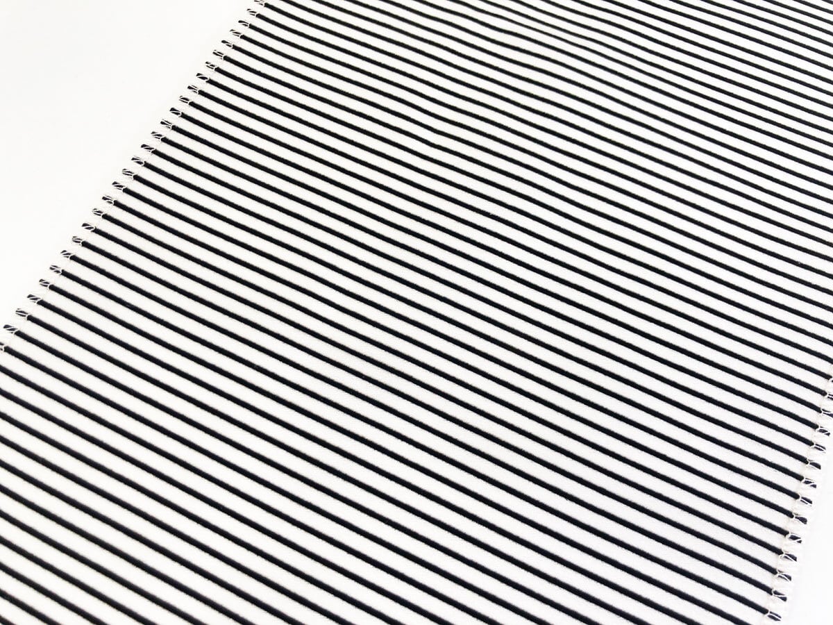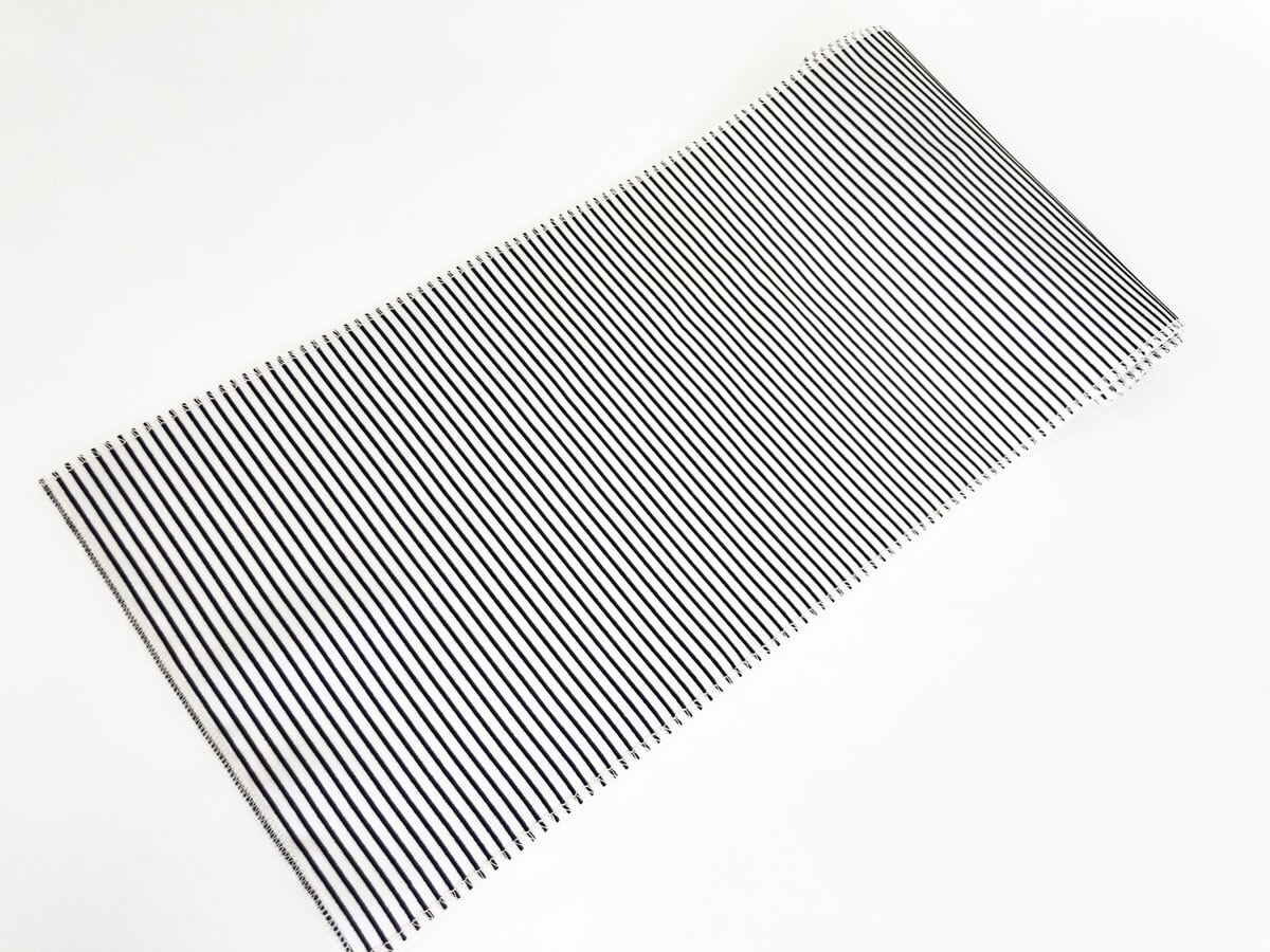 光沢ある白地に黒のストライプがモダンで上品なポリエステル半衿です。