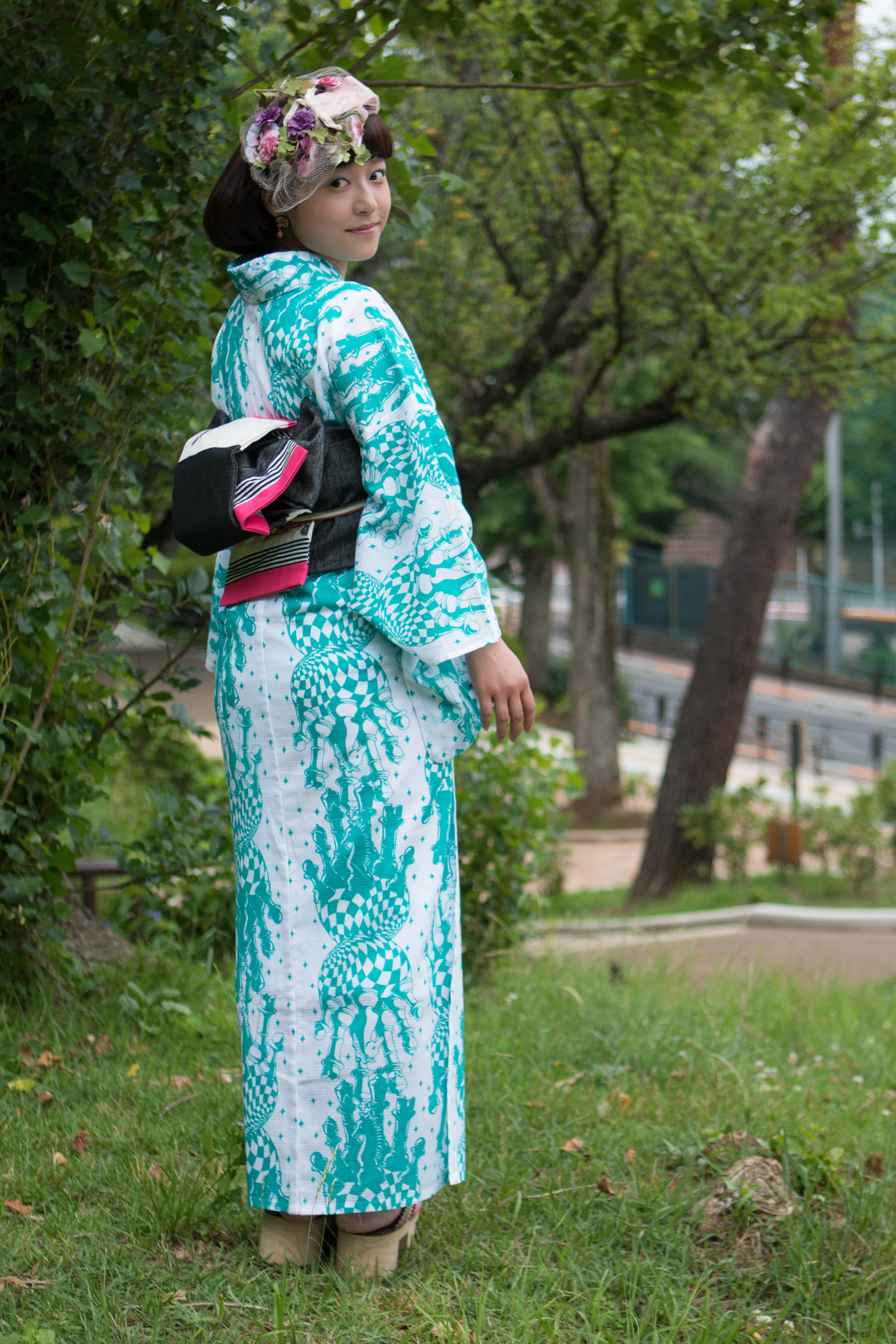 大好きな市松模様をベースに、仕立てた時に縦のラインが強調されてすっきり見えるようにデザインしました。