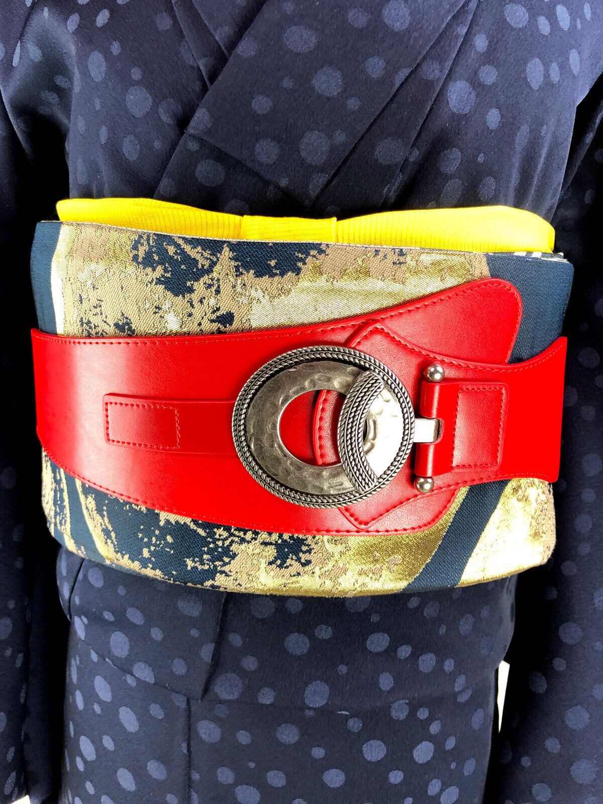 幅広の作りなので、お着物に直接巻いてもおしゃれです。
