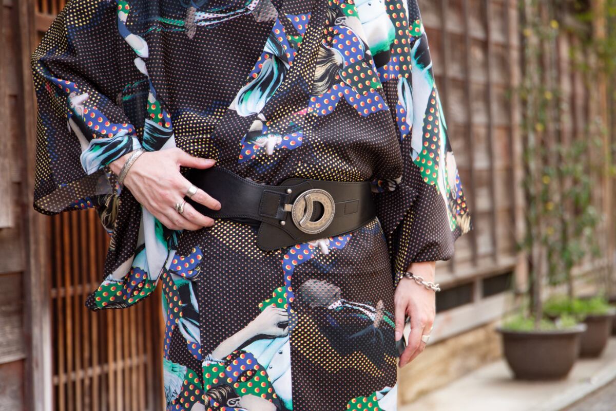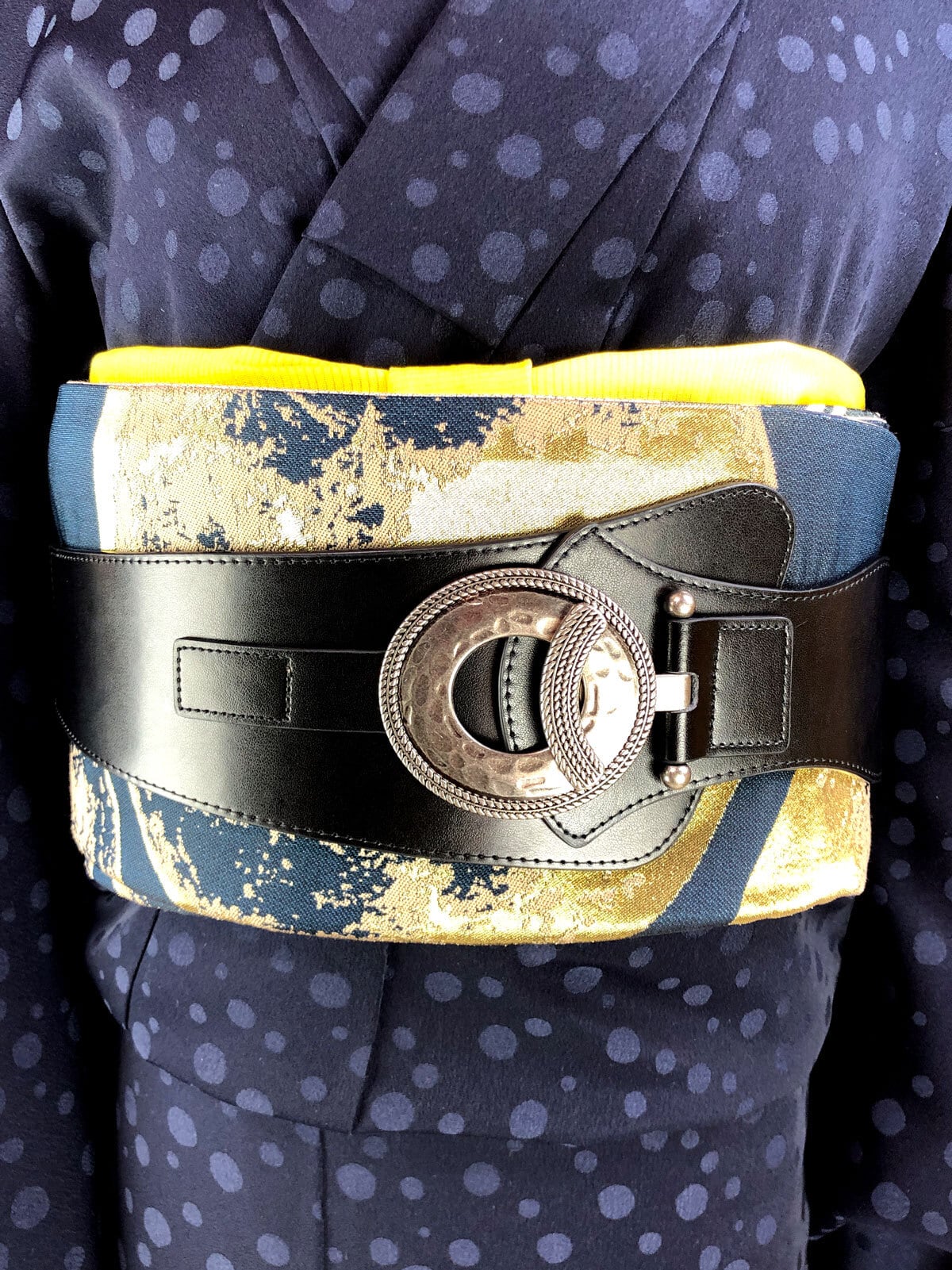 幅広の作りなので、お着物に直接巻いてもおしゃれです。